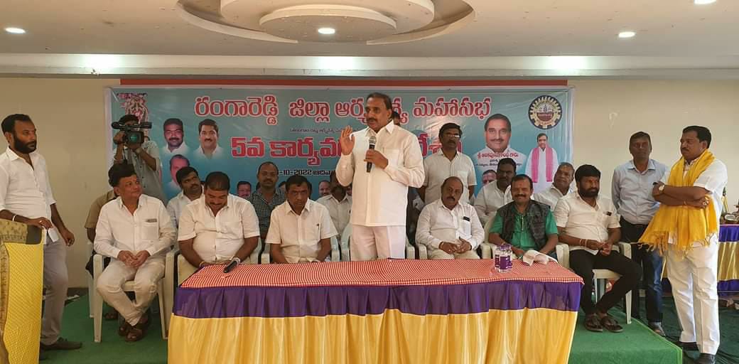 ఆర్య వైశ్య మహాసభ కార్యవర్గ సమావేశంలో మాట్లాడుతున్న ప్రభుత్వ విప్ ఆరెకపూడి గాంధీ