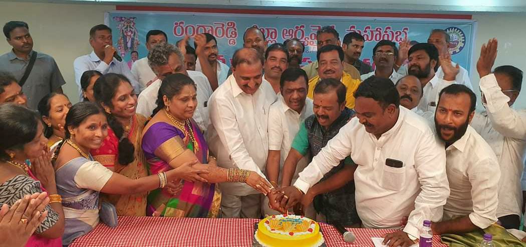 నమస్తే శేరిలింగంపల్లి : రంగారెడ్డి జిల్లా ఆర్య వైశ్య మహాసభ 5వ కార్యవర్గ సమావేశాన్ని శేరిలింగంపల్లి డివిజన్ పరిధిలోని లింగంపల్లిలో అభినవ్ బంకేట్ హాల్ లో నిర్వహించారు. ఈ కార్యక్రమానికి తెలంగాణ ఆర్యవైశ్య మహాసభ అధ్యక్షుడు, ఇండస్ట్రీస్ చైర్మన్ అమరవాది లక్ష్మీనారాయణ గుప్తా, తెలంగాణ రాష్ట్ర ఆర్యవైశ్య మహాసభ ఆర్గనైజింగ్ సెక్రటరీ రేణుగుంట్ల గణేష్ గుప్తా, తెలంగాణ రాష్ట్ర ఆర్యవైశ్య మహా సభ పొలిటికల్ చైర్మన్ చింతల రవి కుమార్ గుప్తాతో కలిసి ప్రభుత్వ విప్ ఆరెకపూడి గాంధీ ముఖ్యఅతిథిగా పాల్గొన్నారు. ఈ సందర్భంగా ఆర్య వైశ్య సంఘం నిర్వాహకులు ప్రభుత్వ విప్ గాంధీ జన్మదినాన్ని పురస్కరించుకుని కేక్ కట్ చేసి ఆయనకు శుభాకాంక్షలు తెలిపారు. ఈ సందర్భంగా ప్రభుత్వ విప్ గాంధీ మాట్లాడుతూ ఆర్య వైశ్య సంఘం మహా సభలో పాల్గొనడం చాలా సంతోషకరంగా ఉందని , ఆర్య వైశ్య సంఘం సభ్యులకు అన్ని విధాలుగా అండగా ఉంటానని , ఎల్లవేళలా తనవంతు సహాయ సహకారాలు అందిస్తానని తెలిపారు. ఈ కార్యక్రమంలో చందానగర్ డివిజన్ అధ్యక్షులు రఘునాథ్ రెడ్డి, తెరాస నాయకులు మల్లేష్ గుప్తా, అక్బర్ ఖాన్, నరేందర్ బల్లా , నటరాజ్, అధ్యక్షులు తాడేపల్లి వెంకటేశం గుప్త, ప్రధాన కార్యదర్శి గందే సురేష్ గుప్త, కోశాధికారి బిల్ల కంటి కిరణ్ కుమార్ గుప్త, శేరిలింగంపల్లి మండల ఆర్య వైశ్య సంగం అధ్యక్షుడు గంప సత్యనారాయణ గుప్త, జిల్లా కార్యవర్గ సభ్యులు, వివిధ మండలాల పి ఎస్ టి లు, శేరిలింగంపల్లి బస్తి సంఘాలు పాల్గొన్నారు.