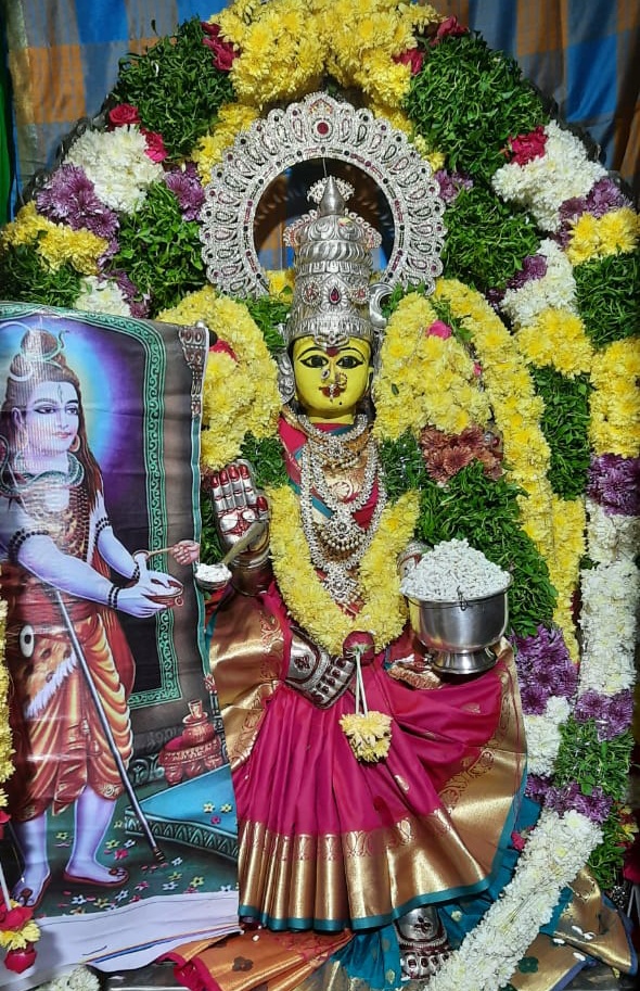 చందానగర్ (నమస్తే శేరిలింగంపల్లి): చందానగర్ శిల్పా ఎంక్లేవ్ లోని విశాఖ శ్రీ శారదా పీఠ పరిపాలిత శ్రీలక్ష్మీ గణపతి దేవాలయంలో శ్రీ దేవి శరన్నవరాత్రి ఉత్సవాలు 3వ రోజు ఘనంగా కొనసాగాయి. ఆలయంలోని భ్రమరాంబ దేవి శ్రీ అన్నపూర్ణాదేవి అవతారంలో భక్తులకు దర్శనమిచ్చారు. అమ్మవారు శివుడికి అన్నం వడ్డిస్తున్నట్టు అద్భుత అలంకరణ భక్తులకు కనువిందు చేసింది. శ్రీ అన్నపూర్ణ దేవి అలంకరణ, పూజ, ప్రసాదం సేవలో భక్తులు సత్యనారాయణ, ప్రసాద్ శర్మ, కామేశ్వరిలు శ్రీలక్ష్మీగణపతి సన్నిధి లక్ష్మీ దేవి వస్త్రాలంకరణ సేవలో రమాదేవి, లక్ష్మీకుమారిలు, ప్రసాద సేవలో వెంకటరామకృష్ణ, సమీరాదేవిలు భాగస్వామ్యం అయ్యారు. పరిసర ప్రాంతాల భక్తులు పెద్ద సంఖ్యలో పాల్గొని అన్నపూర్ణాదేవిని దర్శించుకున్నారు.