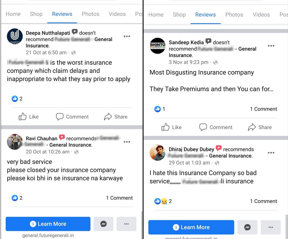 - భీమా సంస్థల గురించి ఇదివరకటి వినియోగదారులు ఆయా సంస్థల సామజిక మాధ్యమాలలో (facebook, twitter)ఇచ్చే రివ్యూలను పరిశీలించడం మంచిది.