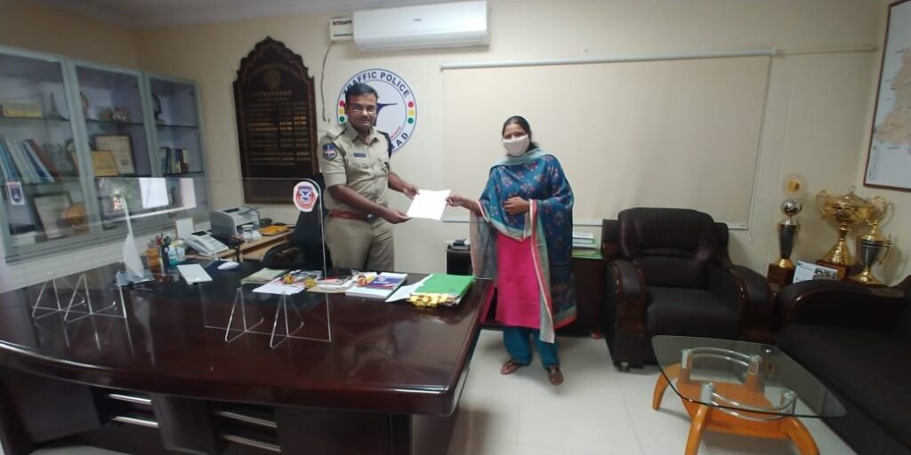 ట్రాఫిక్ డిసిపికి వినతిపత్రం సమర్పిస్తున్న నవతరెడ్డి