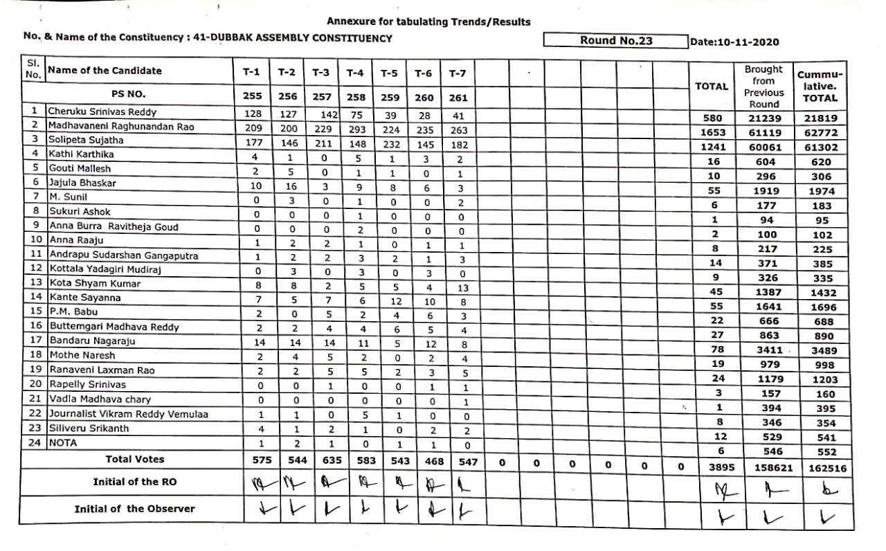 వార్తలు దుబ్బాక ఫలితాలు : చివరి రౌండ్ పూర్తయ్యే సరికి 1470 ఓట్ల మెజారిటీతో బిజెపి అభ్యర్థి రఘునందన్ రావ్ By నమస్తే ప్రతినిధి - November 10, 2020 FacebookTwitterPinterestWhatsApp దుబ్బాక ఉప ఎన్నిక ఫలితాలు… 23వ రౌండ్ పలితాలు: బీజేపీ : 1653 టీఆర్ఎస్ : 1241 కాంగ్రెస్ : 580 బీజేపీ ఆధిక్యత : 412 మొత్తంగా ఓట్ల లెక్క చూస్తే బిజెపి : 62772 టీఆర్ఎస్ : 61302 కాంగ్రెస్ : 21819 బీజేపీ లీడ్: 1470 Advertisement