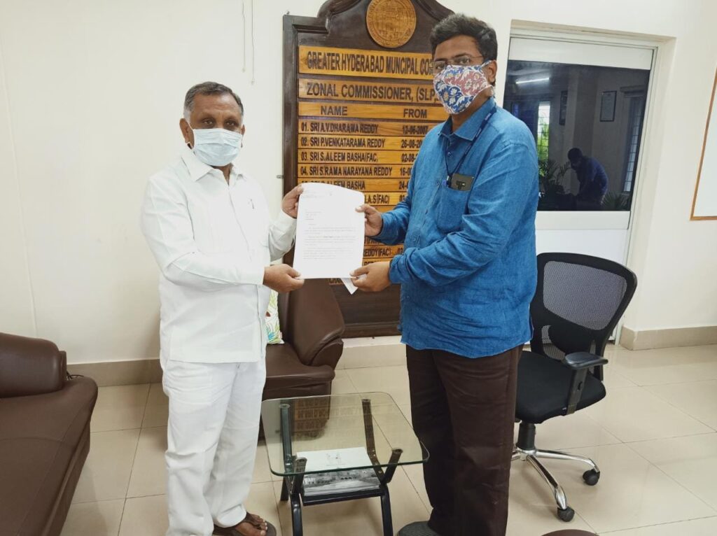 కొండాపూర్: కొండాపూర్ డివిజన్ లో చేపట్టవలసిన అభివృద్ధి పనులకు నిధులు మంజూరు చేయాలని కోరుతూ స్థానిక కార్పొరేటర్ హమీద్ పటేల్ శేరిలింగంపల్లి జోనల్ కమీషనర్ రవికిరణ్ కు వినతిపత్రం సమర్పించారు. బుధవారం జెడ్ సి కార్యాలయంలో ఆయనను కలిసిన హమీద్ పటేల్ డివిజన్లో చేపట్టవలసిన అభివృద్ధి పనుల గురించి చర్చించారు. ఈ సందర్భంగా హమీద్ పటేల్ మాట్లాడుతూ కొండాపూర్ డివిజన్ పరిధిలోని గౌతమి ఎనక్లేవ్, సైబర్ హిల్స్, వడ్డెర బస్తీ, అంజయ్య నగర్, సిద్దిఖ్ నగర్, రాఘవేంద్ర కాలనీ తదితర ప్రాంతాల్లో సిసిరోడ్ల నిర్మాణం చేపట్టవలసి ఉందన్నారు. దీంతోపాటు పలు కాలనీలలో వీధి దీపాల ఏర్పాటు అవసరం ఉందని అభివృద్ధి కార్యక్రమాలకు వెంటనే నిధులు మంజూరు చేయాలని కొరినట్లు తెలిపారు. తన ప్రతిపాదనలపై జెడ్ సి సానుకూలంగా స్పందించారన్నారు.