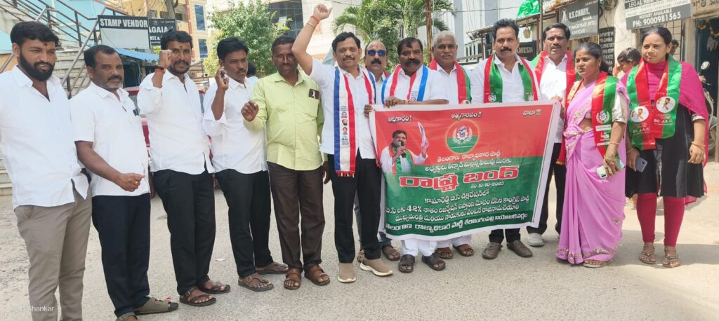 శేరిలింగంపల్లి, అక్టోబర్ 10 (నమస్తే శేరిలింగంపల్లి): బిసి కుల సంఘాలు, బీసీ సంఘాలు ఇచ్చిన రాష్ట్ర వ్యాప్త బంద్ పిలుపులో భాగంగా మియాపూర్ ప్రధాన చౌరస్తాలో శేరిలింగంపల్లి జేఏసీ చైర్మన్, టిఆర్పి శేరిలింగంపల్లి అధ్యక్షుడు రమేష్ యాదవ్ ఆధ్వర్యంలో నిర్వహించిన ధర్నా కార్యక్రమంలో బిసి ఐక్యవేదిక అధ్యక్షుడు బేరి రామచంద్ర యాదవ్, బీసీ ఫెడరేషన్ అధ్యక్షుడు ఆర్కే సాయన్న ముదిరాజ్ పాల్గొన్నారు. ఈ సందర్భంగా రమేష్ యాదవ్ మాట్లాడుతూ కామారెడ్డి డిక్లరేషన్ ప్రకారం కాంగ్రెస్ ప్రభుత్వం ఎట్టి పరిస్థితిలోనూ బీసీలకు 42 శాతం రిజర్వేషన్లను ఇచ్చి తీరాలన్నారు. బీసీ రిజర్వేషన్లతోనే స్థానిక సంస్థల ఎన్నికలు జరిగేంత వరకు తాము పోరాటం చేస్తామన్నారు. ఇందుకు అవసరం అయితే సుప్రీం కోర్టు వరకు వెళ్లేందుకు తాము సిద్ధంగా ఉన్నామన్నారు. భేరి రామచంద్ర యాదవ్ మాట్లాడుతూ బీసీలను రాజకీయ పార్టీలు ఎన్నో ఏళ్లుగా మోసం చేస్తూ వస్తున్నాయని మండి పడ్డారు. రాజకీయ, సామాజిక, ఆర్థిక రంగాల్లో బీసీలకు గత 70 ఏళ్లుగా అన్యాయం జరుగుతుందన్నారు. పోరాడి తాము అధికారాన్ని సాధించుకుంటామని స్పష్టం చేశారు. తమకు ఎస్సీ, ఎస్టీ, మైనారిటీలు మద్దతు పలకాలని కోరారు. ఈ కార్యక్రమంలో వికారాబాద్ జిల్లా బిసి సంఘాల ఐక్యవేదిక అధ్యక్షుడు శంకర్, కంకల్ బిసి అధ్యక్షుడు శ్రీనివాస్, విజయలక్ష్మి, బి కృష్ణ, మల్కయ్య, బీసీ ఎస్సీ ఎస్టీ సంఘాల నాయకులు తదితరులు పాల్గొన్నారు.