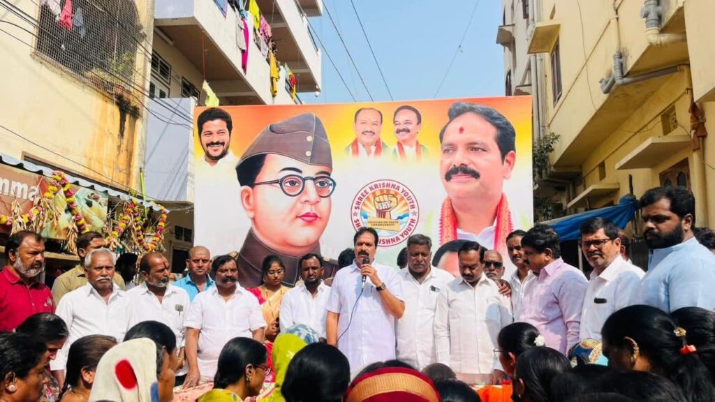 శేరిలింగంపల్లి కాంగ్రెస్ పార్టీ ఇంచార్జ్ జగదీశ్వర్ గౌడ్ మాట్లాడుతూ శ్రీకృష్ణ యూత్ ఆధ్వర్యంలో అధ్యక్షుడు బాలరాజ్ ముదిరాజ్ ఆధ్వర్యంలో నేతాజీ సుభాష్ చంద్రబోస్ జయంతి సందర్భంగా మహిళ‌లకు చీరల పంపిణీ కార్యక్రమం చేప‌ట్టారు. శ్రీకృష్ణ యూత్ ఆధ్వర్యంలో ఎన్నో సేవా కార్యక్రమాలు నిర్వహిస్తున్నందుకు ధన్యవాదాలు తెలియజేశారు. ప్రజలకు ఏ కష్టాలు వచ్చినా శ్రీకృష్ణ యూత్ సభ్యులు ముందుంటారని అన్నారు .ఈ కార్యక్రమంలో కాలనీ ఉపాధ్యక్షుడు రాయుడు, కే నరసింహ యాదవ్, బుచ్చయ్య యాదవ్, రామేశ్వరమ్మ, మల్లేష్ ముదిరాజ్, సుభాష్ ముదిరాజ్, ఆశా బేగం, యూత్ నాయకులు రాజు, లవణాచారి పాల్గొన్నారు.