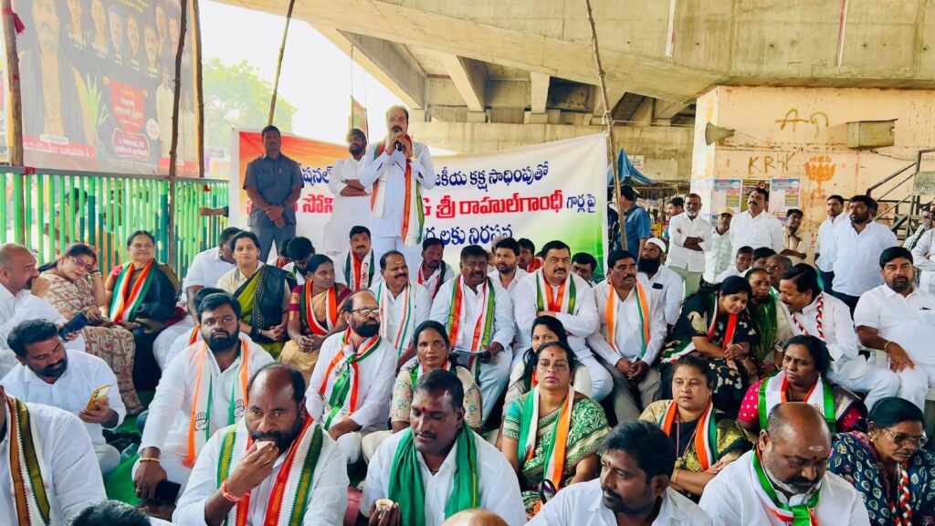 శేరిలింగంపల్లి, డిసెంబర్ 18 (నమస్తే శేరిలింగంపల్లి): నేషనల్ హెరాల్డ్ కేసులో రాజకీయ కక్ష సాధింపుతో సోనియా గాంధీ, రాహుల్ గాంధీపై చర్యలు చేపట్టారని నిరసిస్తూ శంషాబాద్ బస్టాండ్లోని డా. బి.ఆర్. అంబేద్కర్ విగ్రహం వద్ద టీపీసీసీ, డిసిసి ఆధ్వర్యంలో నిరసన కార్యక్రమం నిర్వహించారు. ఈ కార్యక్రమంలో కాంగ్రెస్ పార్టీ సీనియర్ నాయకుడు మిరియాల ప్రీతం పాల్గొన్నారు. ఈ నిరసన కార్యక్రమంలో టీపీసీసీ రాష్ట్ర ప్రధాన కార్యదర్శి, శేరిలింగంపల్లి నియోజకవర్గ కాంగ్రెస్ పార్టీ ఇన్చార్జ్ వి. జగదీశ్వర్ గౌడ్, షాద్నగర్ ఎమ్మెల్యే వీర్లపల్లి శంకర్, తెలంగాణ అర్బన్ ఫైనాన్స్ చైర్మన్ చల్లా నర్సింహారెడ్డి పాల్గొన్నారు. కాంగ్రెస్ పార్టీ సీనియర్ నాయకులు, కాంటెస్టెడ్ కార్పొరేటర్లు, డివిజన్ అధ్యక్షులు, బ్లాక్ అధ్యక్షులు, డివిజన్ ఇన్చార్జులు, మైనారిటీ నాయకులు, లేబర్ సెల్ నాయకులు, మహిళా కాంగ్రెస్ బ్లాక్ అధ్యక్షులు, యువ నాయకులు, యూత్ కాంగ్రెస్, ఎన్ఎస్యూఐ, సేవాదళ్, బీసీ దళ్ నాయకులు, పెద్ద సంఖ్యలో కాంగ్రెస్ పార్టీ కార్యకర్తలు హాజరయ్యారు.