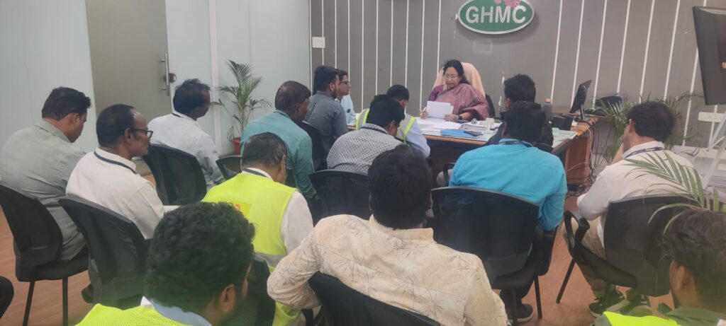 శేరిలింగంపల్లి, జనవరి 20 (నమస్తే శేరిలింగంపల్లి): మియాపూర్ సర్కిల్ 48లో SWG కార్మికుల హాజరు, SAT హాజరు, GVPల తొలగింపు, స్పెషల్ శానిటేషన్ డ్రైవ్ కార్యకలాపాలపై డిప్యూటీ EE SWM, AE SWM, SS, SRP, SFAలతో వారంవారీ మంగళవారం పారిశుధ్య సమీక్ష సమావేశం నిర్వహించారు. GHMC మియాపూర్ సర్కిల్ డిప్యూటీ కమిషనర్ శశిరేఖ అధ్యక్షతన పారిశుధ్య విభాగం సమీక్షా సమావేశం నిర్వహించారు. సర్కిల్ పరిధిలోని రోడ్లు, కాలనీలు ఎప్పటికపుడు శుభ్రంగా ఉండేట్లు చూసుకోవాలని, కాలనీల లో పారిశుధ్య పనులు చేయాలని, చెత్తను ఎవరూ బయట వేయకుండా, రోజూ ఆటోకు అందించే విధంగా ప్రజలకు అవగాహన కల్పించాలని సూచించారు.