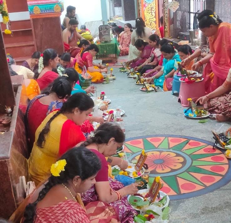 శేరిలింగంప‌ల్లి, ఆగ‌స్టు 15 (న‌మ‌స్తే శేరిలింగంప‌ల్లి): శ్రావణ మాసం సందర్బంగా చందాన‌గ‌ర్‌లోని గౌత‌మి న‌గ‌ర్ వేముకుంట‌లో ఉన్న శ్రీ శ్రీ శ్రీ మహాశక్తి లలితా పోచమ్మ దేవాలయంలో లలితా సహస్రనామ సామూహిక కుంకుమార్చన నిర్వ‌హించారు. ఈ సంద‌ర్భంగా సుమారుగా 400 మహిళ‌లు అమ్మవారి లలితా సహస్రనామ కుంకుమార్చనలో పాల్గొన్నారు. అనంత‌రం సుమారుగా 1500 మంది భక్తులు అన్నప్ర‌సాదం స్వీకరించారు. ఈ పూజలో టీపీసీసీ రాష్ట్ర కార్య‌ద‌ర్శి, కాంగ్రెస్ పార్టీ శేరిలింగంప‌ల్లి ఇన్‌చార్జి, కార్పొరేట‌ర్ జ‌గ‌దీశ్వ‌ర్ గౌడ్‌, కార్పొరేట‌ర్లు మంజుల రఘునాథరెడ్డి, పూజిత గౌడ్, రాష్ట్ర కాంగ్రెస్ నాయకుడు రఘునందనరెడ్డి, యువ నాయకుడు జేరిపాటి రాజు, మాజీ కౌన్సిలర్ సునీత ప్రభాకరరెడ్డి దంపతులు, ప‌రిస‌ర ప్రాంతాల‌కు చెందిన భ‌క్తులు పాల్గొన్నారు.