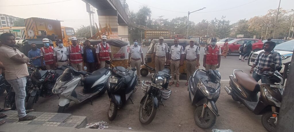శేరిలింగంప‌ల్లి, ఫిబ్ర‌వరి 3 (న‌మ‌స్తే శేరిలింగంప‌ల్లి): వాహ‌న‌దారులు ట్రాఫిక్ నియ‌మాల‌ను పాటించ‌కుండా డ్రైవింగ్ చేస్తే క‌ఠిన చ‌ర్య‌లు తీసుకుంటామ‌ని మియాపూర్ ట్రాఫిక్ పోలీస్ స్టేష‌న్ ఇన్‌స్పెక్ట‌ర్ ప్ర‌శాంత్ హెచ్చ‌రించారు. పోలీస్ స్టేష‌న్ పరిధిలోని ఆల్విన్ ఎక్స్ రోడ్డు వ‌ద్ద ప్రత్యేక డ్రైవ్ నిర్వ‌హించారు. ఇందులో ఇన్‌స్పెక్ట‌ర్ ప్ర‌శాంత్‌తోపాటు ఎస్సైలు హ‌రి శంక‌ర్‌, విఠ‌ల్ రెడ్డి, ట్రాఫిక్ పోలీసులు, సిబ్బంది పాల్గొన్నారు. ఈ సంద‌ర్భంగా రాంగ్ సైడ్ డ్రైవింగ్ చేస్తున్న వాహ‌న‌దారుల‌ను ఆపి వారి వాహ‌నాల‌ను సీజ్ చేశారు. ఈ డ్రైవ్‌లో భాగంగా 7 టూవీల‌ర్ వాహ‌నాలు, 6 త్రీ వీల‌ర్ ఆటో రిక్షాలు మొత్తం క‌లిపి 13 వాహ‌నాల‌ను సీజ్ చేశామ‌ని, వాహ‌న‌దారుల‌పై ఎఫ్ఐఆర్‌ల‌ను న‌మోదు చేశామ‌ని ఇన్‌స్పెక్ట‌ర్ ప్ర‌శాంత్ తెలిపారు. వాహ‌నాల‌ను రాంగ్ సైడ్‌లో న‌డిపిస్తున్న వాహ‌న‌దారుల‌పై చ‌ట్ట ప్ర‌కారం చ‌ర్య‌లు తీసుకుంటామ‌ని తెలిపారు. ట్రాఫిక్ నిబంధ‌న‌ల‌ను ఉల్లంఘిస్తే ఎంత‌టి వారిపైనైనా క‌ఠిన చ‌ర్య‌లు తీసుకుంటామ‌ని హెచ్చ‌రించారు.