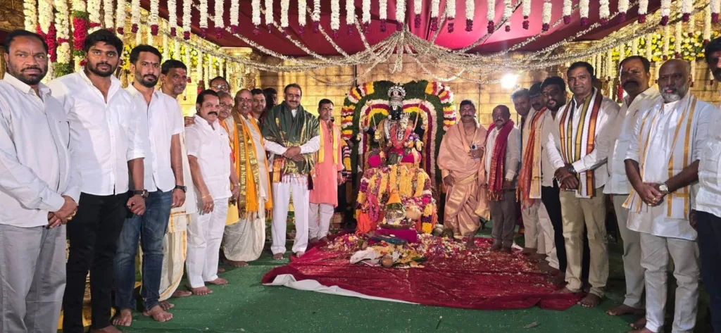 శేరిలింగంపల్లి, మార్చి 27 (నమస్తే శేరిలింగంపల్లి): శ్రీరామ నవమి పర్వదినంను పురస్కరించుకుని శేరిలింగంపల్లి డివిజన్ పరిధిలోని హుడా ట్రేడ్ సెంటర్ లో రామాలయం లో జరిగిన శ్రీ సీతారాముల కళ్యాణ మహోత్సవం కార్యక్రమంలో PAC చైర్మన్ ఆరెకపూడి గాంధీ ముఖ్యఅతిథిగా పాల్గొని ప్రత్యేక పూజలు చేశారు. ఈ సందర్భంగా PAC చైర్మన్ ఆరెకపూడి గాంధీ మాట్లాడుతూ శ్రీరామ నవమి పర్వదినాన ప్రజలు అందరూ సుఖశాంతులతో గడపాలని ఆకాంక్షించారు. శ్రీ సీతారాముల వారి కృపా కటాక్షాలతో ప్రజలందరూ సుఖ సంతోషాలతో ఉండాలని, స్వామి వారి కృప ప్రజలందరి పై ఉంటుందని అన్నారు. ఈ కార్యక్రమంలో నాయకులు, కార్యకర్తలు, కాలనీ వాసులు, భక్తులు, మహిళలు తదితరులు పాల్గొన్నారు.