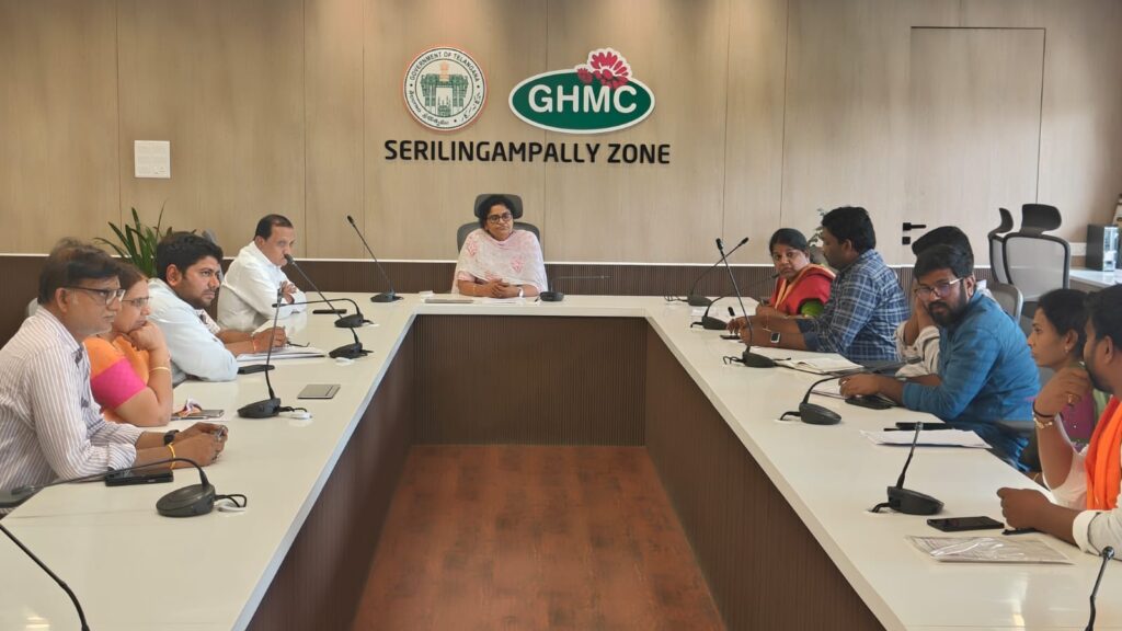శేరిలింగంపల్లి, ఆగస్టు 26 (నమస్తే శేరిలింగంపల్లి): శేరిలింగంపల్లి జీహెచ్ఏంసీ జోనల్ కార్యాలయంలో డిప్యూటీ కమిషనర్ వి. ప్రశాంతి ఆధ్వర్యంలో వినాయక చవితి నవరాత్రుల పండుగ ఏర్పాట్లు, తీసుకోవాల్సిన జాగ్రత్తలు, సదుపాయాలపై ఏర్పాటు చేసిన ప్రత్యేక సమీక్షా సమావేశంలో జీహెచ్ఏంసీ అధికారులు, పలు ఉత్సవ కమిటీ సభ్యులతో కలసి కొండాపూర్ డివిజన్ కార్పొరేటర్ హమీద్ పటేల్ పాల్గొన్నారు. ఈ సందర్బంగా ప్రతి మండపం దగ్గర స్వచ్ఛతకు అధిక ప్రాధాన్యత ఇవ్వాలని కార్పొరేటర్ హమీద్ పటేల్ కోరారు. వర్షాలు పడినప్పుడు మండపాల దగ్గర తీసుకోవాల్సిన జాగ్రత్తలను గురించి ప్రధానంగా చర్చించారు. వినాయక విగ్రహాల ఎత్తుకు సంబంధించి ఊరేగింపు జరుగుతున్నప్పుడు ఎటువంటి కేబుల్స్ అడ్డు తగలకుండా తీసుకువాల్సిన జాగ్రత్తలు, కరెంటు కేబుల్స్ విషయంపై సంబంధిత అధికారులతో సమన్వయం చేసుకోవటం గురించి చర్చించారు.