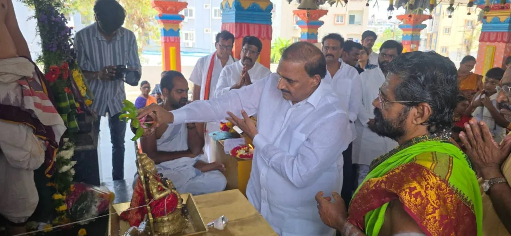 శేరిలింగంపల్లి, ఏప్రిల్ 1 (నమస్తే శేరిలింగంపల్లి): చందానగర్ డివిజన్ పరిధిలోని PJR ఎన్క్లేవ్ రోడ్డు లో ఉన్న జగద్రక్షక శ్రీ ధర్మశాస్త్ర అయ్యప్ప స్వామి దేవాలయము లో జరిగిన శ్రీ అయ్యప్ప స్వామి జన్మనక్షత్ర ( ఉత్తరాఫల్గుణీ నక్షత్ర) పూజ మహోత్సవం కార్యక్రమంలో మాజీ కార్పొరేటర్లు నార్నె శ్రీనివాసరావు, ఉప్పలపాటి శ్రీకాంత్, సీనియర్ నాయకుడు రఘునాథ్ రెడ్డితో కలిసి PAC చైర్మన్ ఆరెకపూడి గాంధీ ముఖ్యఅతిథిగా పాల్గొని ప్రత్యేక పూజలు చేశారు. ఈ కార్యక్రమంలో ప్రసాద్ గురు స్వామి, స్థానిక భక్తులు పాల్గొన్నారు.