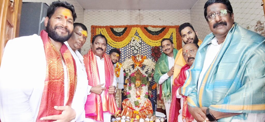 శేరిలింగంపల్లి, ఆగస్టు 3 (నమస్తే శేరిలింగంపల్లి): శేరిలింగంపల్లి డివిజన్ పరిధిలోని లింగంపల్లి విలేజ్ లో ఉన్న శ్రీ నల్ల పోచమ్మ తల్లి దేవాలయం, శ్రీ మహంకాళి తల్లి దేవాలయంలో జరిగిన బోనాల ఉత్సవాలలో MBC చైర్మన్ జేరిపేటి జైపాల్, కార్పొరేటర్లు రాగం నాగేందర్ యాదవ్, ఉప్పలపాటి శ్రీకాంత్, సీనియర్ నాయకుడు రఘునాథ్ రెడ్డితో కలిసి PAC చైర్మన్ ఆరెకపూడి గాంధీ ముఖ్యఅతిథిగా పాల్గొని ప్రత్యేక పూజలు చేశారు. ఈ సందర్భంగా PAC చైర్మన్ గాంధీ మాట్లాడుతూ తెలంగాణ రాష్ట్ర సంస్కృతి , సంప్రదాయాలకు ప్రతీక అయిన బోనాల పర్వదినం సందర్భంగా ప్రజలందరికి బోనాల పర్వదిన శుభాకాంక్షలు తెలియచేస్తున్నాను అని అన్నారు. అమ్మ వారి దీవెనలతో ప్రజలంతా సుఖ సంతోషాలతో జీవించాలని అమ్మవారిని వేడుకుంటున్నాను అని అన్నారు. ఈ కార్యక్రమంలో నాయకులు, కార్యకర్తలు, మహిళలు, భక్తులు తదితరులు పాల్గొన్నారు.