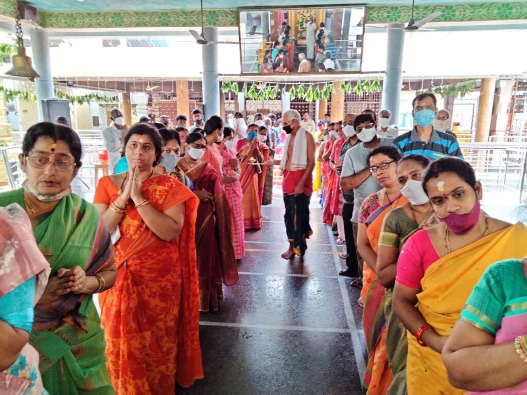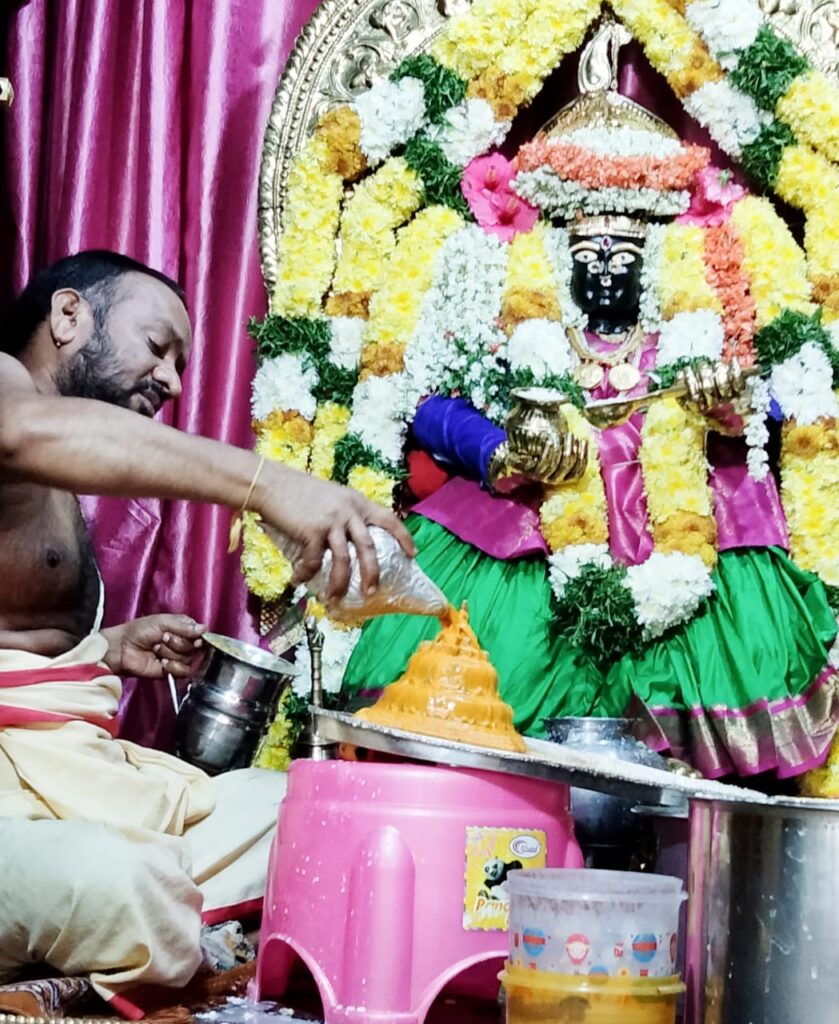 చందానగర్ (నమస్తే శేరిలింగంపల్లి): చందానగర్లోని విశాఖ శ్రీ శారదా పీఠ పాలిత శ్రీ వెంకటేశ్వర స్వామి దేవాలయంలో కొలువైఉన్న శ్రీ భవాని మాత ఆలయంలో దసరా నవరాత్రి ఉత్సవాలు ఘనంగా జరుగుతున్నాయి. మూడో రోజు సోమవారం అమ్మవారికి సుప్రభాత హారతి, శ్రీచక్రార్చన, శ్రీచక్రాభిషేకం నిర్వహించారు. ఈ సందర్భంగా అమ్మవారు అన్నపూర్ణ దేవి అవతారంలో భక్తులకు దర్శనమిచ్చారు. అమ్మవారిని భక్తులు దర్శించుకుని తీర్థ ప్రసాదాలను స్వీకరించారు. ఈ కార్యక్రమంలో ఆలయ ప్రధాన అర్చకుడు సత్యసాయి, భవాని ఆలయ అర్చకుడు రవిశర్మ, పాలకమండలి సభ్యులు, దేవాలయ సేవాసమితి సభ్యులు, పరిసర ప్రాంత భక్తులు పాల్గొన్నారు.