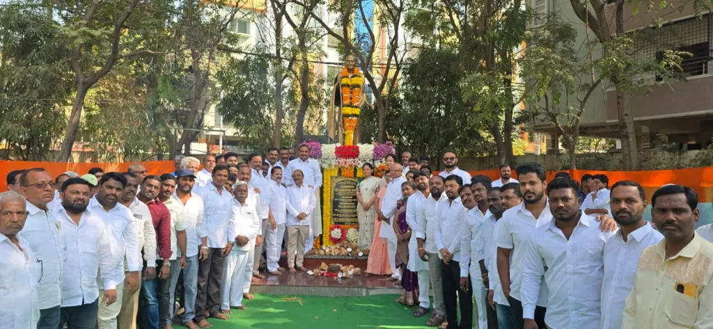 చందాన‌గ‌ర్ గాంధీ విగ్ర‌హం పీజేఆర్ స్టేడియంలో పునఃప్ర‌తిష్ట