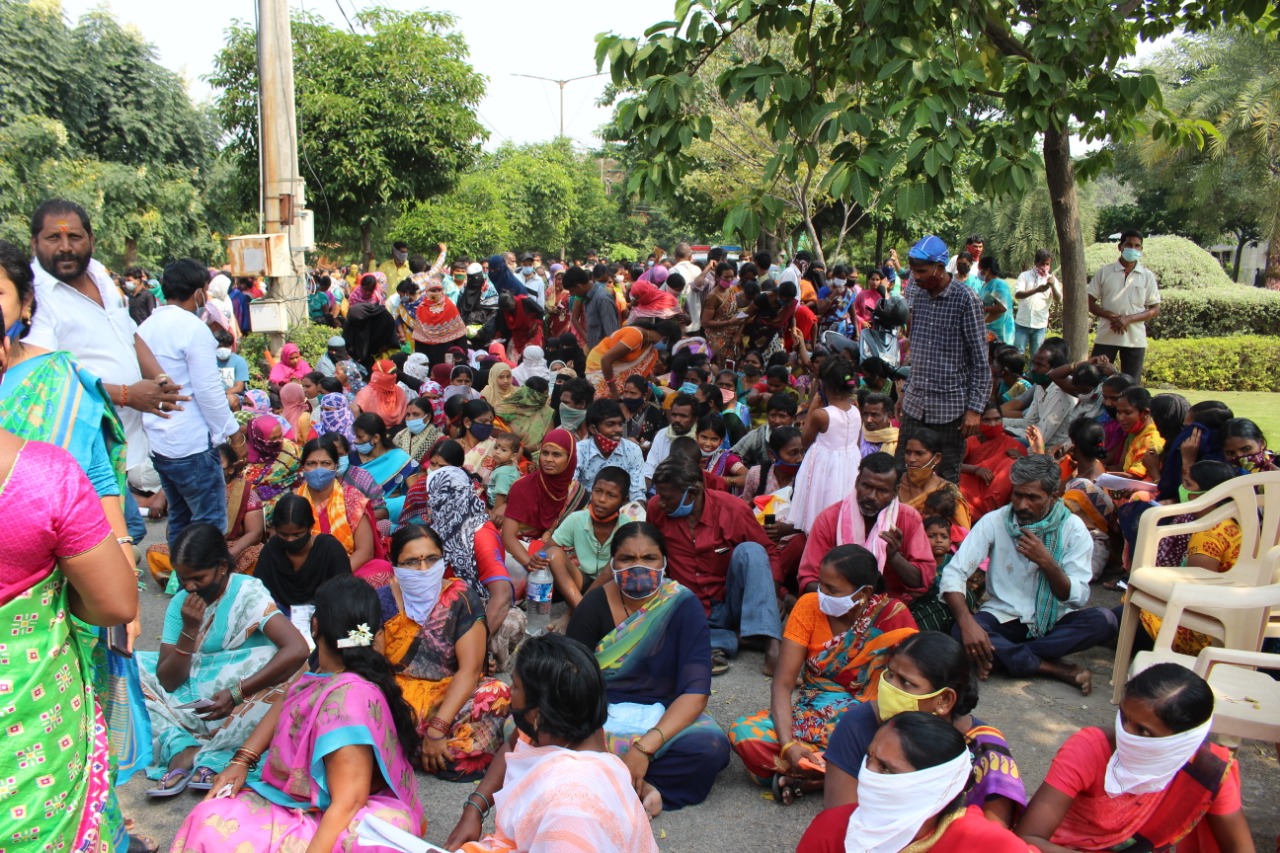 శేరిలింగంప‌ల్లి జోన‌ల్ కార్యాల‌యం ముందు బైటాయించిన స‌హాయం అంద‌ని వ‌ర‌ద‌బాదితులు