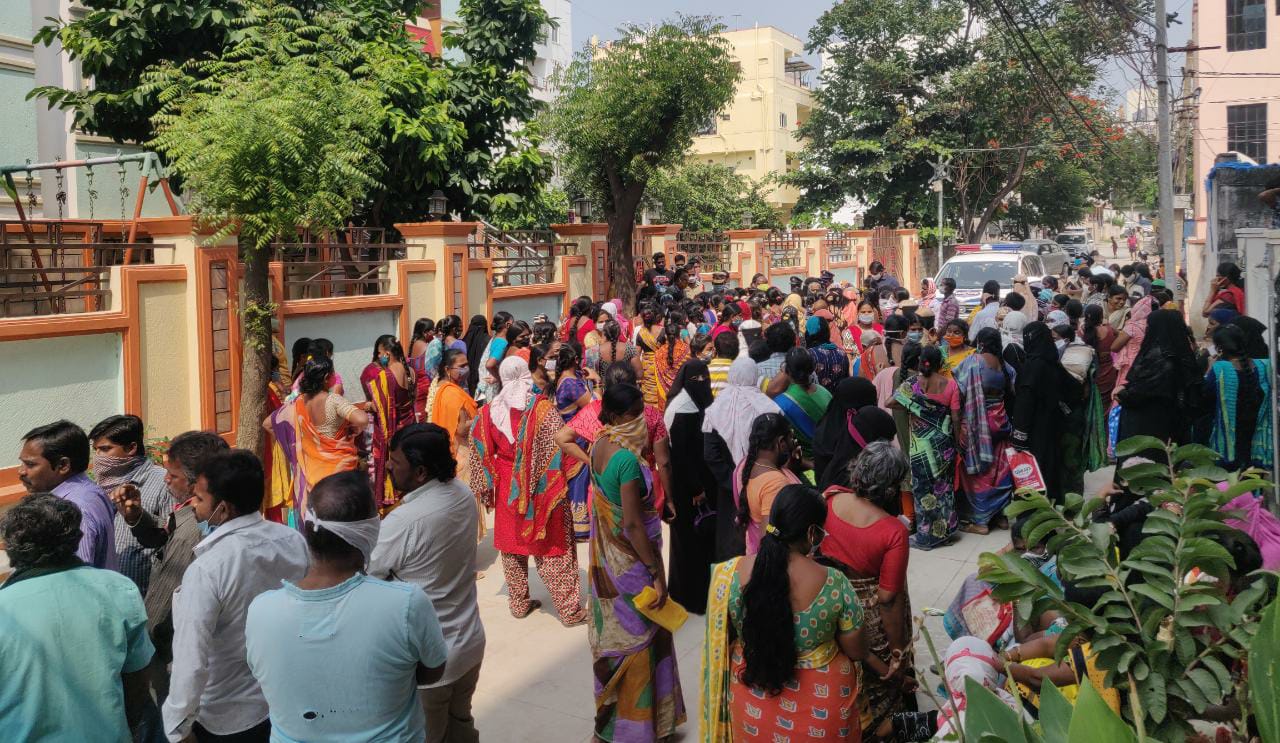 వివేకానంద‌న‌గ‌ర్‌, ఆల్విన్‌కాల‌నీ డివిజ‌న్‌ల‌లోని ప‌లు బ‌స్తీల‌కు చెందిన మ‌హిళ‌లు పెద్దఎత్తున ప్ర‌భుత్వ విప్ ఆరెక‌పూడి గాంధీ ఇంటిని చుట్టుముట్టారు. త‌మ‌కు త‌క్ష‌ణ వ‌ర‌ద సాయం అంద‌లేద‌ని ఆవేద‌న వ్య‌క్తం చేశారు. వ‌ర‌ద‌సాయం పంపిణీ విష‌యంలో స్థానిక నాయ‌కుల తీరుపై మండిప‌డ్డారు. బ‌స్తీల్లోని అర్హులంద‌రికి వ‌‌ర‌ద సాయం అందించాల‌ని డిమాండ్ చేశారు. స్పందించిన ప్ర‌భుత్వ విప్ గాంధీ అక్క‌డ‌కు వ‌చ్చిన బాధితుల పేర్ల‌ను న‌మోదు చేయించుకున్నారు. సంబంధిత అధికారుల‌తో మాట్లాడారు. బాధితులంద‌రికి త‌క్ష‌ణ వ‌ర‌ద‌సాయం అందేలా చూస్తాన‌ని హామీ ఇవ్వ‌డంతో మ‌హిళ‌లు వెనుదిరిగారు.