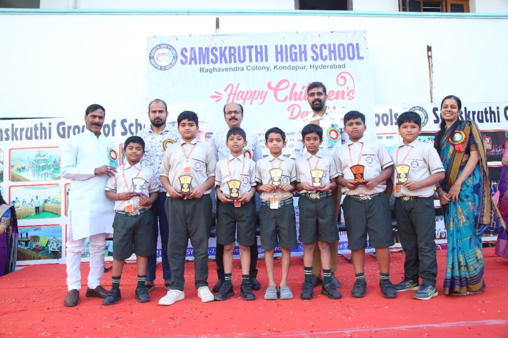 చిల్డ్రన్స్ డే ఉత్సవాల్లో భాగంగా సంస్కృతి స్కూల్ మేనేజ్మెంట్ వారు వారం రోజులపాటు నిర్వహించిన ఆటల పోటీల్లో గెలుపొందిన విద్యార్థులకు ఆయన బహుమతులను అందజేశారు. కొండాపూర్ లోని నకోడ గోల్డ్ షాప్ వారు వెండి రేకులపై ముద్రించిన హనుమాన్ చాలీసా పుస్తకాలను బహుమతులుగా విద్యార్థులకు అందజేశారు. విద్యార్థులు వివిధ నృత్యాలతో చూపరులను ఆకర్షించారు. ఈ కార్యక్రమంలో సంస్కృతి గ్రూప్ ఆఫ్ చైర్మన్ మంగళారపు లక్ష్మణ్, ప్రిన్సిపాల్ కృష్ణ ప్రసాద్, వైస్ ప్రిన్సిపాల్ బాలరాజ్, విద్యార్థుల తల్లిదండ్రులు, కాలనీ వాసులు పాల్గొన్నారు.