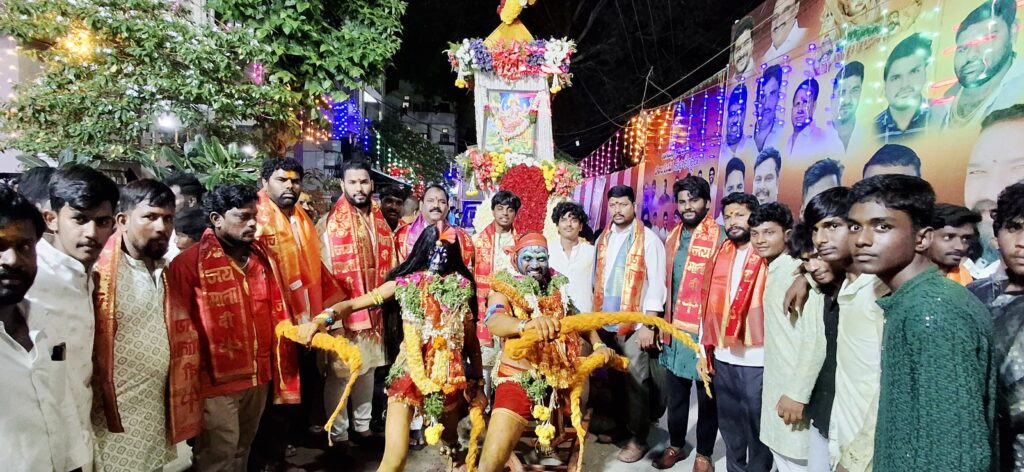 శేరిలింగంపల్లి, ఆగస్టు 4 (నమస్తే శేరిలింగంపల్లి): శేరిలింగంపల్లి డివిజన్ లోని లింగంపల్లి విలేజ్ లో పలు ఫలహారం బండ్ల, తొట్టెల ఊరేగింపుల్లో కార్పొరేటర్ రాగం నాగేందర్ యాదవ్ పాల్గొన్నారు. ఈ సందర్భంగా ఆయన అమ్మవారికి ప్రత్యేక పూజలు నిర్వహించారు. రాష్ట్ర యువజన నాయకులు రాగం అనిరుధ్ యాదవ్, రాగం అభిషేక్ యాదవ్ ఈ ఊరేగింపుల్లో పాల్గొన్నారు. డప్పుల మోతలు, పోతురాజుల విన్యాసాలు, శివసత్తుల పూనకాలు, అడుగడుగునా భక్తుల నీటి సాకల మధ్య ఊరేగింపును అత్యంత భక్తి శ్రద్ధలతో నిర్వహించారు. కార్పొరేటర్ రాగం నాగేందర్ యాదవ్ ఈ సందర్భంగా కొద్ది సేపు నృత్యం చేసి ప్రజల్లో ఉత్సాహాన్ని నింపారు. ఈ కార్యక్రమంలో లింగంపల్లి విలేజ్ కమిటీ మెంబర్స్ తదితరులు పాల్గొన్నారు.