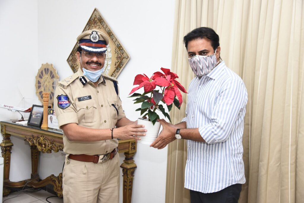 సైబరాబాద్ (నమస్తే శేరిలింగంపల్లి): రాష్ట్ర మున్సిపల్, ఐటీ శాఖ మంత్రి కేటీఆర్కి సైబరాబాద్ సీపీ సజ్జనార్ నూతన సంవత్సర శుభాకాంక్షలు తెలిపారు. ఈ మేరకు మంత్రిని ఆయన నివాసంలో కలిసిన సీపీ ఆయనకు శుభాకాంక్షలు తెలియజేశారు. అనంతరం సైబరాబాద్ పోలీస్, ఎస్సీఎస్సీల 2020 వార్షిక నివేదకను మంత్రికి సీపీ అందజేశారు. ఈ కార్యక్రమంలో శంషాబాద్ డీసీపీ ప్రకాష్ రెడ్డి, వుమెన్ అండ్ చిల్డ్రన్ సేఫ్టీ వింగ్ డీసీపీ అనసూయ, మాదాపూర్ డీసీపీ వెంకటేశ్వర్లు, బాలానగర్ డీసీపీ పద్మజ, ఎస్సీఎస్సీ జనరల్ సెక్రెటరీ కృష్ణ ఏదుల పాల్గొన్నారు.