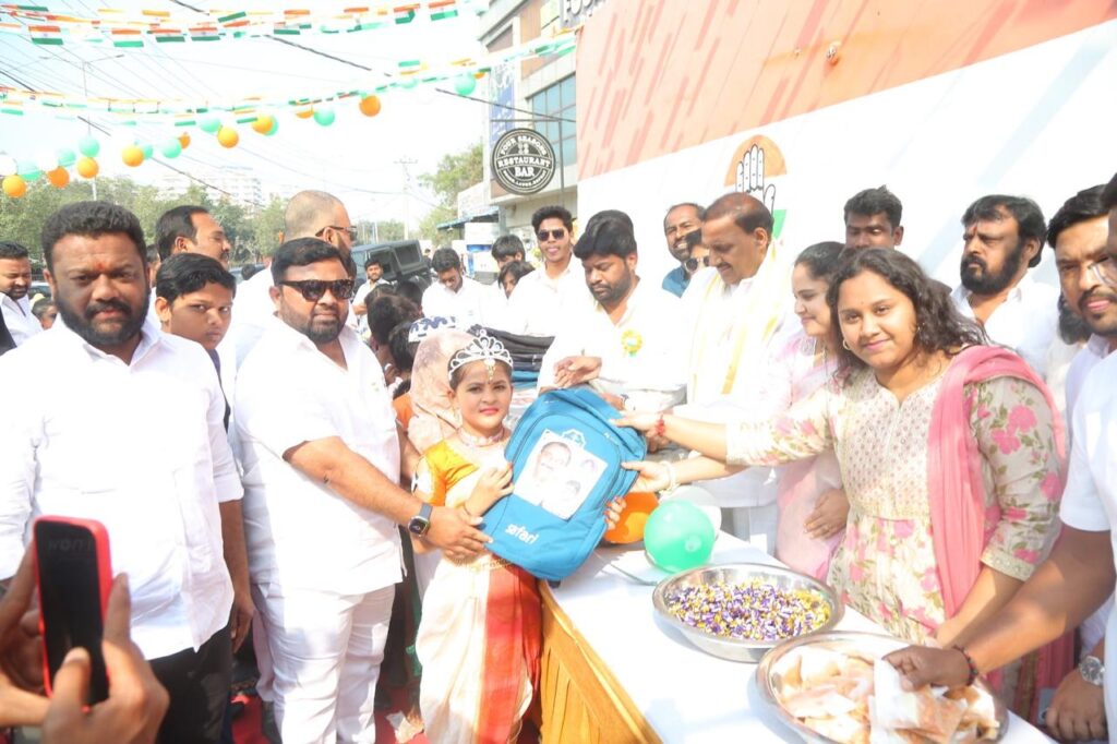 శేరిలింగంపల్లి, జనవరి 26 (నమస్తే శేరిలింగంపల్లి): హఫీజ్ పేట డివిజన్ లో గణతంత్ర దినోత్సవ వేడుకలు అత్యంత వైభవంగా జరిగాయి. ఈ సందర్భంగా హఫీజ్పేట్ డివిజన్ కాంగ్రెస్ పార్టీ సీనియర్ నాయకుడు గౌతమ్ గౌడ్ ఆధ్వర్యంలో ఏర్పాటు చేసిన కార్యక్రమంలో, ప్రభుత్వ ప్రాథమిక పాఠశాల విద్యార్థులకు ఉచితంగా స్కూల్ బ్యాగులను పంపిణీ చేశారు. ఈ కార్యక్రమానికి ముఖ్య అతిథిగా విచ్చేసిన పిఎసి (PAC) చైర్మన్ , శేరిలింగంపల్లి ఎమ్మెల్యే ఆరెకపూడి గాంధీ తన చేతుల మీదుగా విద్యార్థులకు బ్యాగులను అందజేశారు. ఈ కార్యక్రమంలో స్థానిక నేతలు, ఉపాధ్యాయులు, విద్యార్థులు, వారి తల్లిదండ్రులు పెద్ద ఎత్తున పాల్గొన్నారు.
