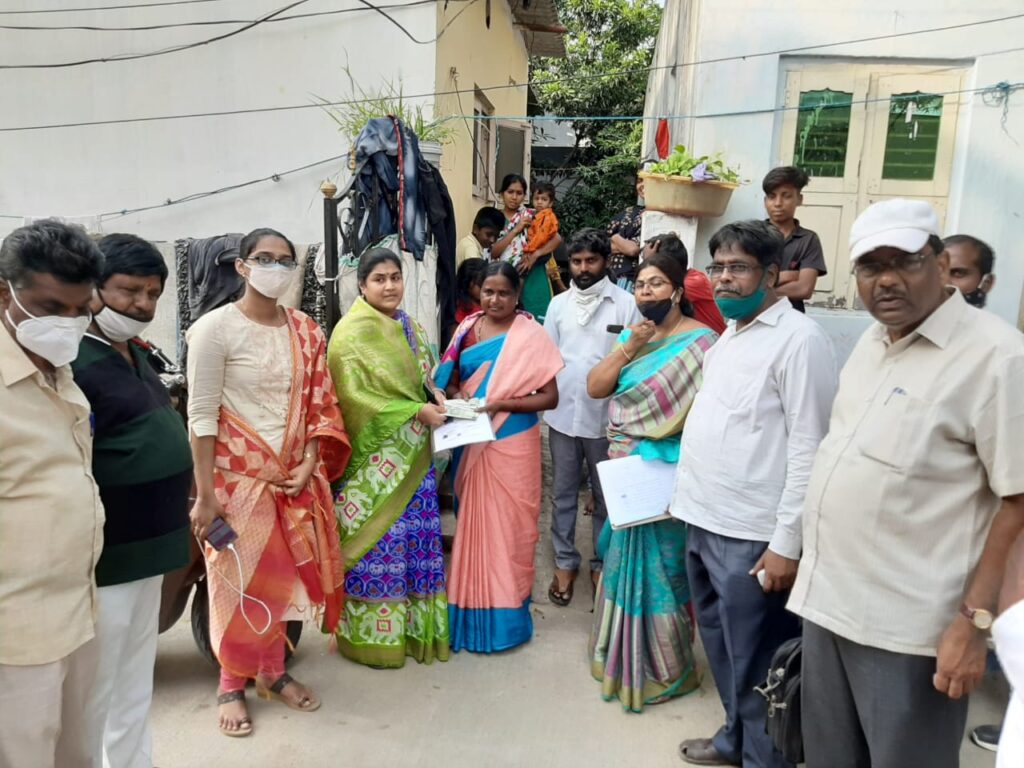 బాధితుల‌కు రూ.10వేలు అంద‌జేస్తున్న కార్పొరేటర్ వి.పూజిత జగదీశ్వర్ గౌడ్