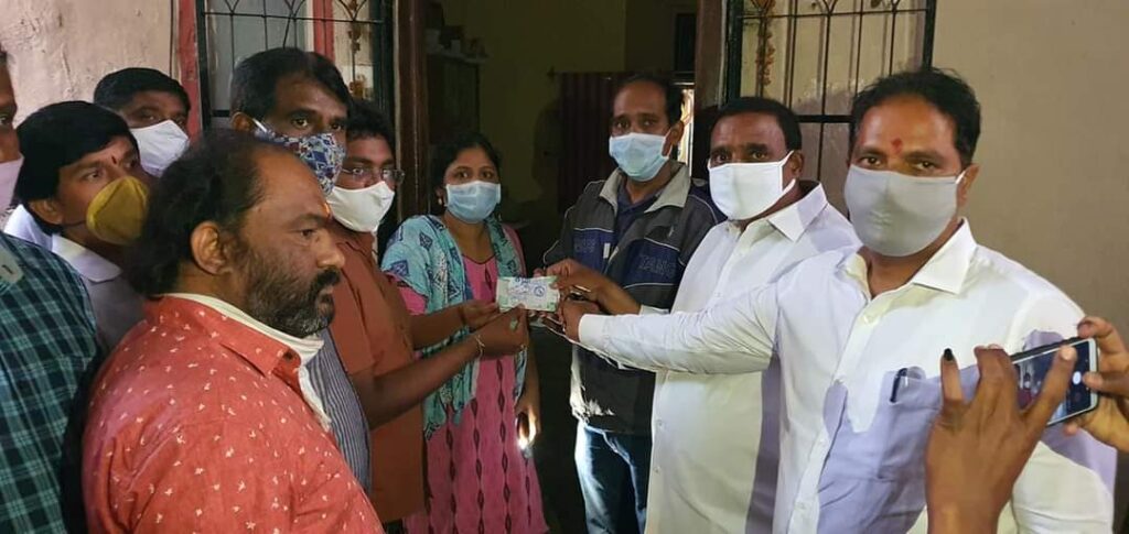 జ‌నప్రియ‌న‌గ‌ర్‌లో స‌హాయం అంద‌జేస్తున్న ఆరెక‌పూడి గాంధీ, కార్పొరేటర్ జగదీశ్వర్ గౌడ్