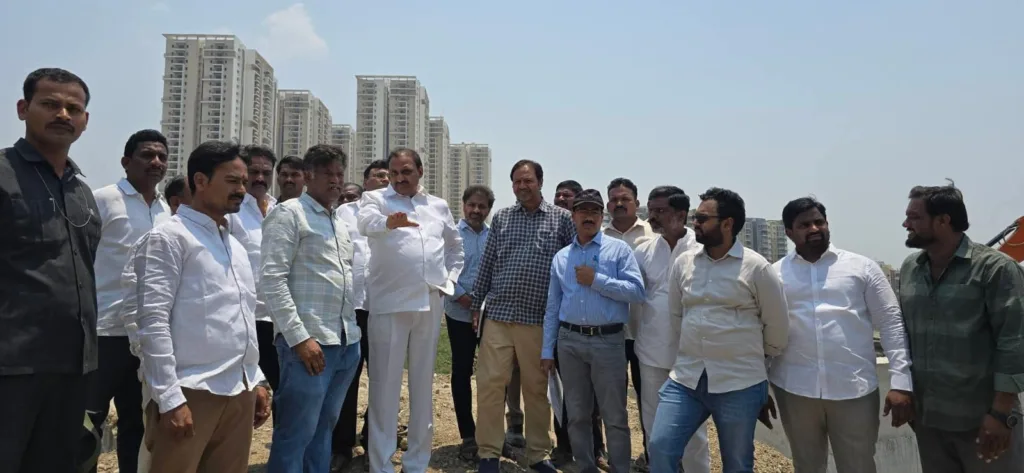 శేరిలింగంపల్లి, ఏప్రిల్ 16 (నమస్తే శేరిలింగంపల్లి): ఆల్విన్ కాలనీ డివిజన్ పరిధిలోని ఎల్లమ్మ చెరువు సుందరీకరణ, సంరక్షణ, అభివృద్ధి పనులలో భాగంగా రూ. 2 కోట్ల 74 లక్షల అంచనా వ్యయంతో చెరువులో మురుగు నీరు కలవకుండా చేపడుతున్న మురుగు నీటి మళ్లింపు పైప్ లైన్ నిర్మాణం పనులను, సుందరీకరణ పనులను మాజీ కార్పొరేటర్ నార్నె శ్రీనివాసరావు, సీనియర్ నాయకుడు రఘునాథ్ రెడ్డి, ఇరిగేషన్ అధికారులతో కలిసి PAC చైర్మన్ ఆరెకపూడి గాంధీ పరిశీలించారు. ఈ సందర్బంగా PAC చైర్మన్ గాంధీ మాట్లాడుతూ ఎల్లమ్మ చెరువు సుందరీకరణ, సంరక్షణ, అభివృద్ధి పనులు చేపట్టడం జరుగుతుందని తెలిపారు. చెరువులో కలుషిత నీరు కలవకుండా చేపడుతున్న డ్రైనేజీ వ్యవస్థ మళ్లింపు పనులను త్వరితగతిన పూర్తి చేయాలని అన్నారు. అసంపూర్తిగా మిగిలిపోయిన డ్రైనేజీ వ్యవస్థ మళ్లింపు పైప్ లైన్ నిర్మాణం పనులలో వేగం పెంచాలని అన్నారు. ఈ కార్యక్రమంలో ఇరిగేషన్ అధికారులు ఈఈ రామకృష్ణ, డిఇ వీరారెడ్డి, ఏఈ సర్వేషాం, నాయకులు నాయినేని చంద్రకాంత్, ఎర్రగుడ్ల శ్రీనివాస్ యాదవ్, జిల్లా గణేష్, మారేళ్ల శ్రీనివాస్, Md ఇబ్రహీం, కాశీనాథ్ యాదవ్, గుడ్ల శ్రీనివాస్ తదితరులు పాల్గొన్నారు.