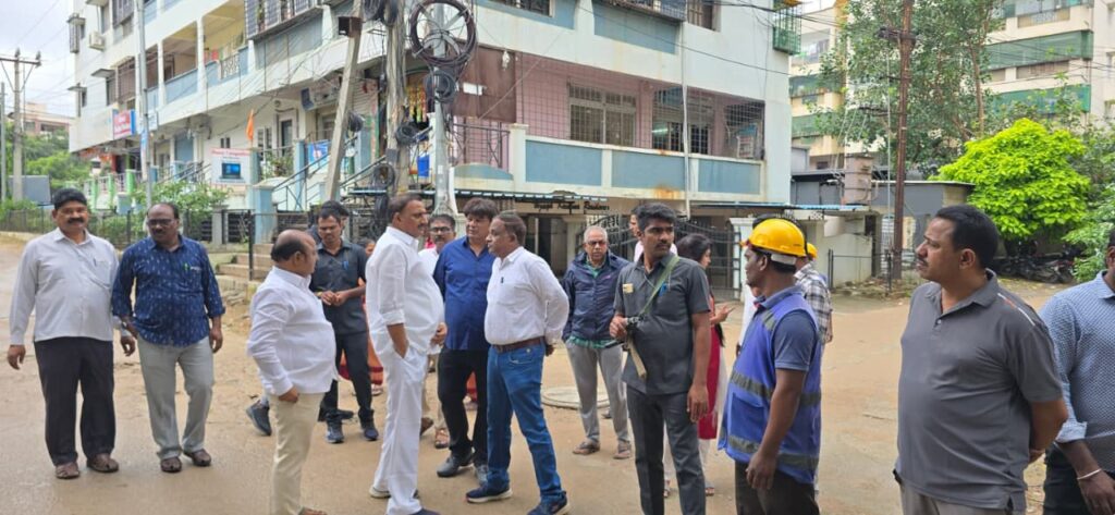 శేరిలింగంపల్లి, ఆగస్టు 18 (నమస్తే శేరిలింగంపల్లి): చందానగర్ డివిజన్ పరిధిలోని సాయి నగర్ కాలనీ ఔట్ లెట్ సమస్యపై కాలనీ వాసుల విజ్ఞప్తి మేరకు కార్పొరేటర్ ఉప్పలపాటి శ్రీకాంత్, సీనియర్ నాయకుడు రఘునాథ్ రెడ్డి, జలమండలి అధికారులతో కలిసి PAC చైర్మన్ ఆరెకపూడి గాంధీ పరిశీలించారు. ఈ సందర్భంగా PAC చైర్మన్ గాంధీ మాట్లాడుతూ సాయి నగర్ కాలనీ ఔట్ లెట్ సమస్యకు శాశ్వత పరిష్కారం త్వరలోనే చూపుతామని అన్నారు. ఔట్ లెట్ సరిగ్గా లేకపోవడం వలన, కుచించుకోపోవడం వలన కాలనీలో మురుగు సమస్య తీవ్రమైందని, ఔట్ లెట్ ను సరి చేసి డ్రైనేజి సమస్య ను త్వరితగతిన పరిష్కరించాలని అన్నారు. యుద్ధప్రాతిపదికన పనులు చేపట్టాలని, కాలనీ వాసులకు ఎటువంటి ఇబ్బందులు రాకుండా అన్ని రకాల చర్యలు తీసుకోవాలని అధికారులకు సూచించారు. ఈ కార్యక్రమంలో జలమండలి అధికారులు GM శ్రీనివాస్ రెడ్డి, DGM నారాయణ, మేనేజర్లు సునీత, శిరీష, వర్క్ ఇన్స్పెక్టర్ కిష్టప్ప, నాయకుడు ఎర్రగుడ్ల శ్రీనివాస్ యాదవ్, కాలనీ వాసులు తదితరులు పాల్గొన్నారు.