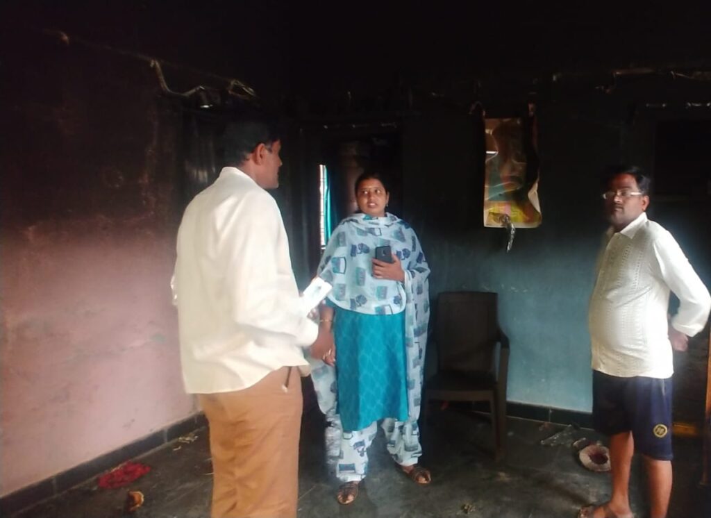 చందానగర్ (నమస్తే శేరిలింగంపల్లి): చందానగర్ డివిజన్ పరిధిలోని కైలాష్ నగర్ బస్తీలో విద్యుత్ షార్ట్ సర్క్యూట్ కారణంగా ఓ ఇంట్లో టీవీ, ఫ్రిజ్ తదితర ఉపకరణాలు కాలిపోయాయి. అలాగే ఇల్లు కూడా 75 శాతం వరకు కాలిపోయింది. ఈ విషయం తెలుసుకున్న కార్పొరేటర్ నవత రెడ్డి బాధితులను పరామర్శించారు.
