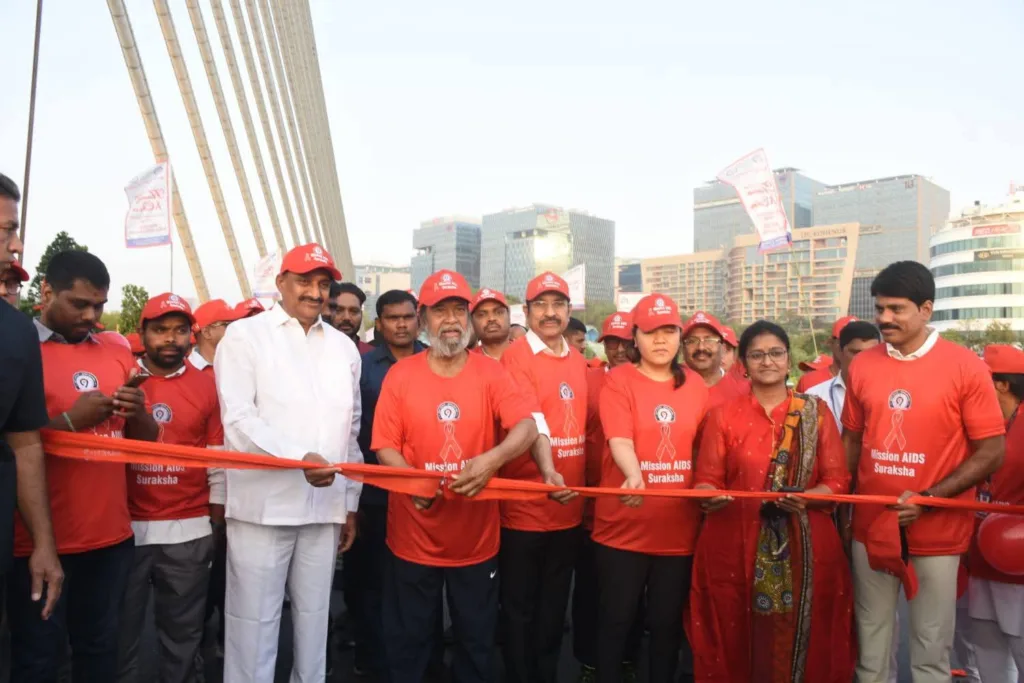 శేరిలింగంపల్లి, ఏప్రిల్ 9 (నమస్తే శేరిలింగంపల్లి): తెలంగాణ రాష్ట్ర ప్రభుత్వం ప్రతిష్టాత్మకంగా చేపట్టిన ప్రజాపాలన ప్రగతి ప్రణాళిక 99 రోజుల కార్యాచరణ కార్యక్రమంలో భాగంగా గురువారం ఎయిడ్స్ పై అవగాహన దినోత్సవం సందర్భంగా నిర్వహించిన ర్యాలీ, మానవహారం కార్యక్రమాలలో తెలంగాణ ఆరోగ్య, వైద్య, కుటుంబ సంక్షేమ, సైన్స్, టెక్నాలజీ శాఖా మంత్రి దామోదర రాజనర్సింహ, ప్రిన్సిపల్ సెక్రటరీ డాక్టర్ క్రిస్టినా, కలెక్టర్ నారాయణ రెడ్డి, DMHO లలిత దేవిలతో కలిసి PAC చైర్మన్ ఆరెకపూడి గాంధీ పాల్గొన్నారు. ఈ సందర్భంగా మంత్రి దామోదర రాజనర్సింహ మాట్లాడుతూ సమాజంలో హెచ్ఐవీ, ఎయిడ్స్పై విస్తృత అవగాహన కల్పించేందుకు రాష్ట్రవ్యాప్తంగా ర్యాలీలు, మానవ హారాలు, మెడికల్ క్యాంప్స్ నిర్వహిస్తున్నామని తెలిపారు. హెచ్ఐవీ శరీరంలోని రోగనిరోధక శక్తిని బలహీనపరచే వైరస్ అని, చికిత్స తీసుకోకుండా ఉంటే అది ఎయిడ్స్గా మారుతుందని అన్నారు.