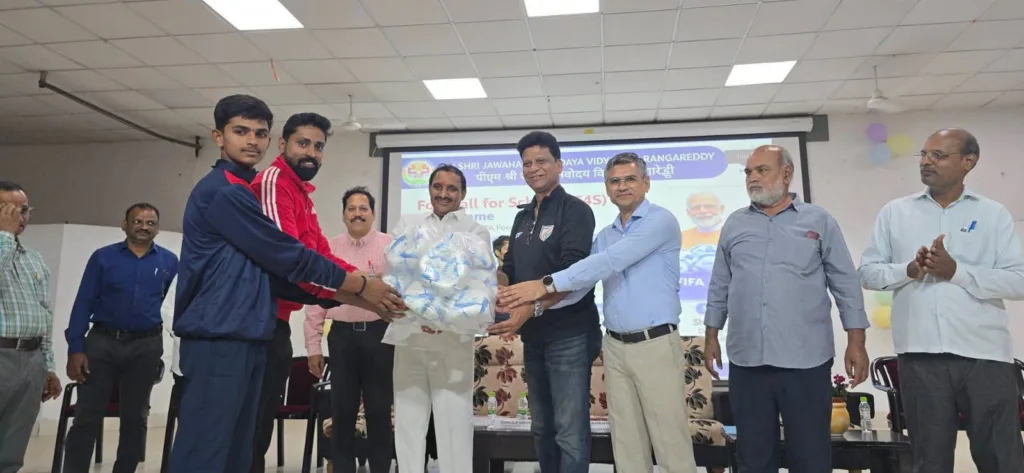 శేరిలింగంపల్లి, ఫిబ్రవరి 14 (నమస్తే శేరిలింగంపల్లి): గచ్చిబౌలి డివిజన్ పరిధిలోని నల్లగండ్లలో PM జవహర్ నవోదయ విద్యాలయం రంగారెడ్డి పాఠశాల ప్రాంగణంలో జరిగిన ఫుట్ బాల్ ఫర్ స్కూల్స్ ఫుట్ బాల్ పంపిణీ కార్యక్రమంలో తెలంగాణ ఫుట్ బాల్ అసోసియేషన్ సెక్రెటరీ పాల్గుణతో కలిసి PAC చైర్మన్ ఆరెకపూడి గాంధీ ముఖ్యఅతిథిగా పాల్గొని జ్యోతి ప్రజ్వలన చేసి పలు పాఠశాలల విద్యార్థులకు పంపిణీ చేశారు. ఈ సందర్భంగా PAC చైర్మన్ గాంధీ మాట్లాడుతూ పలు పాఠశాల విద్యార్థులకు ఫుట్ బాల్ లను పంపిణీ చేయడం చాలా సంతోషంగా ఉందని, ఈ క్రీడలో ప్రావీణ్యం సాధించి, రాష్ట్ర, జాతీయ, అంతర్జాతీయ వేదికల పై మంచి ప్రతిభ కనబర్చి, పథకాలు సాధించి, మన ప్రాంతం, రాష్ట్రం, దేశం పేరును ప్రపంచంలో నిలబెట్టేలా విశ్వవిజేతలుగా నిలిచేలా పట్టుదలతో కృషి చేయాలని అన్నారు. ఈ కార్యక్రమంలో కేంద్రీయ విద్యాలయం గచ్చిబౌలి ప్రిన్సిపాల్ జితేంద్ర కుమార్, జవహర్ నవోదయ రంగారెడ్డి ప్రిన్సిపాల్ విజయ భాస్కర్, ఆఫీసు సూపరింటెండెంట్ శ్రీనివాస్, నాయకులు ఎర్రగుడ్ల శ్రీనివాస్ యాదవ్, మంత్రిపగడ సత్యనారాయణ, విష్జు వర్ధన్ రెడ్డి, అనిల్, ప్రభాకర్ , వేణు గోపాల్ రెడ్డి , నగేష్, శ్రీశైలం , లక్ష్మణ్, నాగరాజు, ఉపాధ్యాయులు, విద్యార్థులు తదితరులు పాల్గొన్నారు.