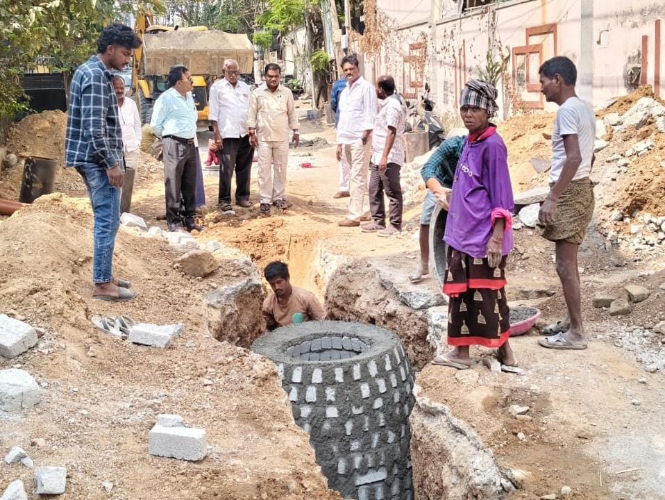 శేరిలింగంపల్లి, ఫిబ్ర‌వ‌రి 11 (న‌మ‌స్తే శేరిలింగంపల్లి): హైదర్ నగర్ డివిజన్ పరిధిలోని వెస్టర్న్ హిల్స్ సొసైటీ అడ్డగుట్ట కాలనీ రోడ్ నంబర్ 11 లో నూతనంగా నిర్మిస్తున్న సివ‌రేజ్ పైప్ లైన్ పనులను జలమండలి, జిహెచ్ఎంసి ఇంజనీరింగ్ అధికారులతో, కాలనీ వాసులతో కలసి మాజీ కార్పొరేటర్ నార్నె శ్రీనివాస రావు ప‌రిశీలించారు. ఈ సందర్భంగా శ్రీ‌నివాస రావు మాట్లాడుతూ కాలనీ వాసుల విజ్ఞప్తి మేరకు పాత సివ‌రేజ్ పైప్ లైన్ స్థానంలో నూతనంగా 300 డ‌యా పైప్ లైన్, మ్యాన్ హోల్స్ నిర్మాణం చేపట్టామని చెప్పారు. ఏ చిన్న సమస్య అయినా త‌న దృష్టికి వ‌స్తే తప్పకుండా పరిష్కరిస్తామని, కాలనీ లలో మౌలిక వసతుల కల్పనకు ప్రథమ ప్రాధాన్యత ఇస్తూ కాలనీలను అన్ని రంగాలలో అభివృద్ధి పథంలో ముందుకు తీసుకువెళ్తున్నామ‌ని అన్నారు. ఈ కార్యక్రమంలో జలమండలి సూపర్వైజర్ నరేంద్ర, జిహెచ్ఎంసి ఇంజనీరింగ్ వర్క్ ఇన్స్పెక్టర్ మహదేవ్, కాలనీ వాసులు తదితరులు పాల్గొన్నారు.