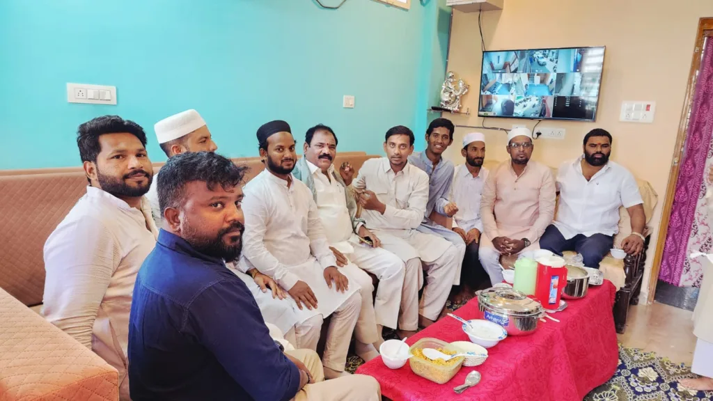 శేరిలింగంపల్లి, మార్చి 21 (నమస్తే శేరిలింగంపల్లి): శేరిలింగంపల్లి నియోజకవర్గంలోని తారానగర్, సిటిజన్స్ కాలనీ, చందానగర్, హఫీజ్పేట, వివిధ ప్రాంతలలో ముస్లింల ఆహ్వానం మేరకు మాజీ కార్పొరేటర్ రాగం నాగేందర్ యాదవ్ ముఖ్య అతిథిగా వారి స్వగృహలకు వెళ్లి రంజాన్ ఈద్ ముబారక్ శుభాకాంక్షలు తెలిపారు. అనంతరం రాగం నాగేందర్ యాదవ్ గచ్చిబౌలి విలేజ్ ప్రెసిడెంట్ సయ్యద్ నయీమ్ ఆహ్వానం మేరకు ముఖ్య అతిథిగా వెళ్లి రంజాన్ శుభాకాంక్షలు తెలిపారు. అనంతరం నయీమ్ స్వగృహంలో ఏర్పాటుచేసిన విందులో పాల్గొని ఆతిథ్యాన్ని స్వీకరించారు. ఈ సందర్బంగా నాగేందర్ యాదవ్ మాట్లాడుతూ.. పవిత్ర రంజాన్ పర్వదినాన్ని శాంతి, పరస్పర సహకారం, ఐక్యమత్యంతో జరుపుకోవాలని అన్నారు. ఈ కార్యక్రమంలో సీనియర్ నాయకులు, యువ నాయకులు, ముస్లింలు తదితరులు పాల్గొన్నారు.