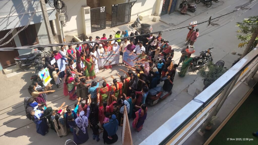 శేరిలింగంపల్లి, నవంబర్ 17 (నమస్తే శేరిలింగంపల్లి): బాలికలను రక్షిద్దాం, చదివిద్దాం, అమ్మాయిలుగా ఉండనిద్దాం, వధువుగా కాదు అని ఐసీడీఎస్ శేరిలింగంపల్లి ప్రాజెక్టు ఆదిత్యనగర్ సెక్టార్ సూపర్ వైజర్ ఠాకూర్ కోమలాబాయి అన్నారు. మార్తాండనగర్ అంగన్ వాడీ కేంద్రం 2 లో బాల్య వివాహాల నిర్మూలనపై నిర్వహించిన అవగాహన కార్యక్రమంలో ఆమె ముఖ్య అతిథిగా పాల్గొన్నారు. ఈ సందర్భంగా ఆమె మాట్లాడుతూ 18 సంవత్సరాల లోపు వయస్సు ఉన్న బాలికలకు, 21 సంవత్సరాల లోపు వయస్సు ఉన్న బాలురకు వివాహం చేయడం, అందుకు సహకరించిన వారందరూ బాధ్యులేనని అన్నారు. అందుకు 2 సంవత్సరాలు జైలు శిక్ష లేదా లక్ష రూపాయల జరిమానా విధిస్తారని అన్నారు. ఆవు, గేదె, మేకలకు ఆడపిల్ల పుడితే సంబరాలు చేసుకుంటాం కానీ మనకు ఆడపిల్ల పుడితే బాధపడతాం అని, ఇంకా ఎన్నాళ్లు ఇలా ప్రవర్తిస్తారని, ఇప్పటికైనా మారుదామని అన్నారు. ఆడపిల్లలను కాపాడుదామని పిలుపునిచ్చారు. జిల్లా స్థాయిలో కలెక్టర్, డివిజన్ స్థాయిలో ఆర్డీవో లేదా సబ్ కలెక్టర్, ప్రాజెక్టు స్థాయిలో సీడీపీవో, మండల స్థాయిలో తహసీల్దార్, సెక్టార్ స్థాయిలో ఐసీడీఎస్ సూపర్ వైజర్, గ్రామ స్థాయిలో పంచాయతీ కార్యదర్శి లేదా అంగన్ వాడీ టీచర్ బాల్య వివాహ నిరోధక అధికారులుగా పనిచేస్తారని అన్నారు. అనంతరం ప్రతిజ్ఞ చేసి ప్లకార్డులు పట్టుకుని క్యాలనీలలో ర్యాలీ నిర్వహించారు. ఈ కార్యక్రమంలో కాలనీవాసులు రూప, రాజీ, గీత, దుర్గం, ఆస్మా బేగం, ఎంపీహెచ్వో సునంద, అంగన్ వాడీ సిబ్బంది, ఆశా కార్యకర్తలు, కాలనీవాసులు తిరుపతి, రజనీకాంత్, వేణు, కిశోర్, బాలికలు, తల్లులు పాల్గొన్నారు.