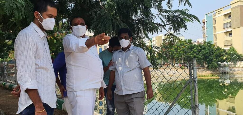 కొండాపూర్ (నమస్తే శేరిలింగంపల్లి): కొండాపూర్ డివిజన్ పరిధిలోని జాగృతి కాలనీ రంగన్న కుంటను ప్రభుత్వ విప్ ఆరెకపూడి గాంధీ శనివారం సందర్శించారు. కాలనీ అసోసియేషన్ సభ్యులు తమ సొంత నిధులతో సుందరీకరణ పనులను చేపట్టడం అభినందనీయమన్నారు. ఇతర కాలనీవాసులు జాగృతి కాలనీ వాసులను ఆదర్శంగా తీసుకోవాలన్నారు. శేరిలింగంపల్లిలోని చెరువులు, కుంటలను ఇప్పటికే సుందరీకరిస్తున్నామని తెలిపారు. చెరువుల చుట్టూ ఫెన్సింగ్ ఏర్పాటు చేసి వాకింగ్ ట్రాక్ నిర్మించడం జరుగుతుందని, చిన్నారులకు ఆట స్థలాలు నిర్మిస్తామని అన్నారు. చెరువుల వద్ద ఆహ్లాదకరమైన వాతావరణం కల్పిస్తామని ఈ సందర్భంగా గాంధీ తెలిపారు. ఈ కార్యక్రమంలో తెరాస నాయకులు శశాంక్, జ్ఞాన్ తేజ, రామకృష్ణ, చంద్రశేఖర్ తదితరులు పాల్గొన్నారు.
