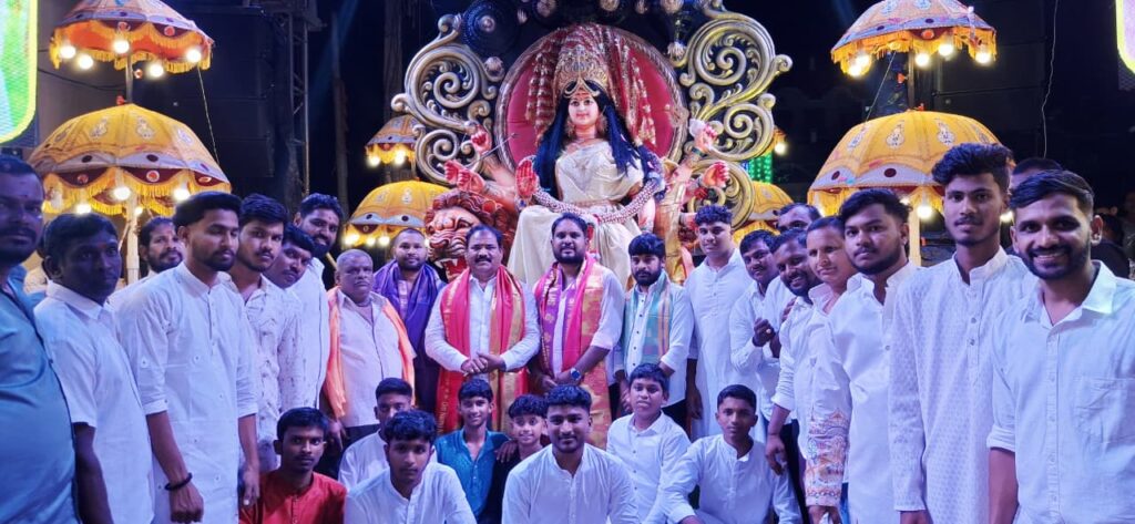 శేరిలింగంపల్లి, అక్టోబర్ 5 (నమస్తే శేరిలింగంపల్లి): శేరిలింగంపల్లి డివిజన్ లోని తారానగర్, ఆదర్శ్ నగర్, లింగంపల్లి, బాపునగర్, చందానగర్ లో శరన్నవరాత్రుల సందర్భంగా 11 రోజుల పాటు పూజాలందుకున్న దుర్గాదేవి విగ్రహాన్ని శేరిలింగంపల్లి కార్పొరేటర్ రాగం నాగేందర్ యాదవ్ ముఖ్య అతిథిగా పాల్గొని ప్రత్యేక పూజ కార్యక్రమాలు నిర్వహించారు. మండప నిర్వాహకులు దుర్గామాత విగ్రహాన్ని అద్భుతంగా అలంకరించి శోభాయాత్ర నిర్వహించారు. బాజా భజంత్రీల నడుమ ప్రధాన వీధుల గుండా ఊరేగింపు సాగింది. మహిళలు, యువతులు ఉత్సాహంగా నృత్యాలు చేస్తూ అమ్మవారిని సాగనంపారు. ఈ సందర్భంగా కార్పొరేటర్ డీజే స్టెప్పులు వేసి యువతలో జోష్ నింపారు.