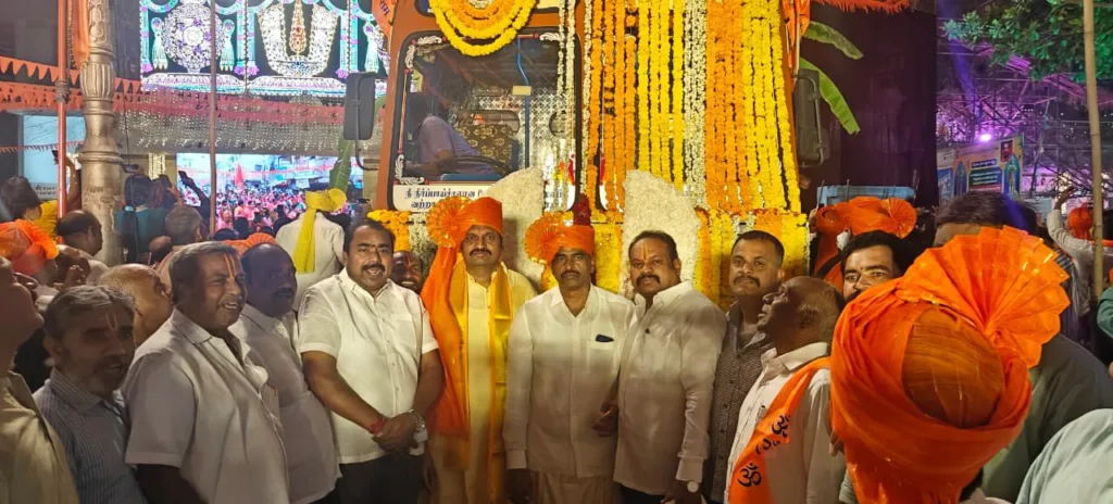 శేరిలింగంపల్లి, ఏప్రిల్ 23 (నమస్తే శేరిలింగంపల్లి): కూకట్ పల్లిలోని శ్రీ సీతారామచంద్రస్వామి దేవస్థానంలో నూతనంగా ఏర్పాటు చేసిన 27 అడుగుల గరుత్మంతుడు, ఆంజనేయ స్వామి విగ్రహాల ప్రతిష్టాపన కార్యక్రమాన్ని గురువారం ఎమ్మెల్యే మాధవరం కృష్ణారావు ఆధ్వర్యంలో ఘనంగా నిర్వహించారు. ప్రతిష్టాపన కార్యక్రమాన్ని పురస్కరించుకొని కూకట్ పల్లి వీధులలో విగ్రహాల మహా ఊరేగింపును రామనామ స్మరణతో అంగరంగ వైభవంగా నిర్వహించారు. భక్తుల జయ జయధ్వానాలు, మంగళవాయిద్యాలు, మహిళల కోలాటాలు, వేద మంత్రోచ్చారణల నడుమ నిర్వహించిన ఈ కార్యక్రమం భక్తి పారవశ్యాన్ని నింపింది. ఈ కార్యక్రమంలో మాజీ కార్పొరేటర్ మాధవరం రోజా దేవి రంగారావు దంపతులు, భక్తులు, స్థానికులు తదితరులు పాల్గొన్నారు.
