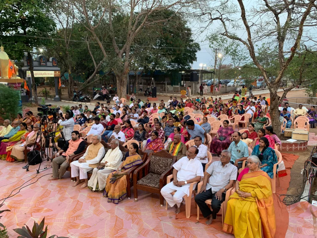 శేరిలింగంపల్లి, మార్చి 20 (న‌మ‌స్తే శేరిలింగంపల్లి): శేరిలింగంపల్లిలోని మియాపూర్ దీప్తిశ్రీ‌న‌గ‌ర్‌లో ఉన్న శ్రీ ధ‌ర్మ‌పురి క్షేత్రంలో భార‌తీయం స‌త్య‌వాణి ఆధ్వ‌ర్యంలో ఉగాది శ్రీ ప‌రాభ‌వ నామ సంవ‌త్స‌ర వేడుక‌ల‌ను ఘ‌నంగా నిర్వ‌హించారు. ఈ సంద‌ర్భంగా ప్ర‌ముఖ అవ‌ధాని రేమెళ్ల‌, ప్ర‌ముఖ బుర్ర క‌థా ర‌చ‌యిత ప్ర‌ద‌ర్శ‌కుడు బాబూజీల‌ను స‌త్య‌వాణి ఘ‌నంగా స‌న్మానించారు. ఉగాదికి వీరిని స‌న్మానించ‌డం సంతోషంగా ఉంద‌ని, సంప్ర‌దాయాల‌ను గౌర‌వించ‌డంలో శ్రీ ధ‌ర్మ‌పురి క్షేత్రం ఎల్ల‌ప్పుడూ ముందుంటుంద‌ని స‌త్య‌వాణి అన్నారు.