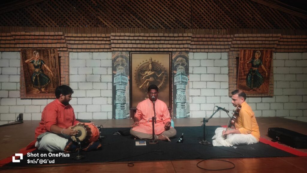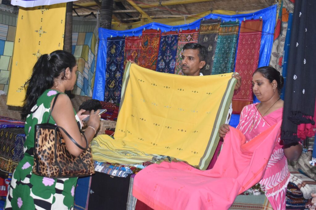 శేరిలింగంపల్లి, అక్టోబర్ 26 (నమస్తే శేరిలింగంపల్లి): మాదాపూర్ శిల్పారామంలో నిర్వహిస్తున్న గుజరాత్ హ్యాండీక్రాఫ్ట్స్ ఉత్సవ్ 2025 సందర్శకులను ఎంతగానో ఆకట్టుకుంటోంది. అద్దాల డ్రెస్ మెటీరియల్స్, అజ్రాక్ బ్లాక్ ప్రింట్ బేడీషీట్స్, బందీని చీరలు, పటోళ్ల చీరలు , తోలు సంచులు, కార్పెట్స్ తదితర ఉత్పత్తులు ప్రత్యేక ఆకర్షణీయంగా నిలుస్తున్నాయి. ఈ సందర్భంగా శనివారం నిర్వహించిన పెండ్యాల సిద్ధి కౌండిన్య రమాకాంత్ గాత్ర కచేరి అలరించింది. వయోలిన్ పై అరుణ్, మృదంగం పై వరుణ్ రవిచందర్ సహకరించారు. వైదేహి సుభష్ శిష్య బృందం భరతనాట్య ప్రదర్శన ఎంతగానో అలరించింది. పుష్పాంజలి, జతిస్వరం, రీతిగౌళ వర్ణం, పదం, స్వాతి తిరుణాల్ కీర్తనం, బృందావన సారంగీ తిల్లానా అంశాలను శ్రీకృతి, వైభవి, హాస్య, రిషిత, హాసవిత, మోక్షిత, లాస్య, మనస్విని, వంశిక, గాయత్రీ, లాస్య ప్రదర్శించి మెప్పించారు.