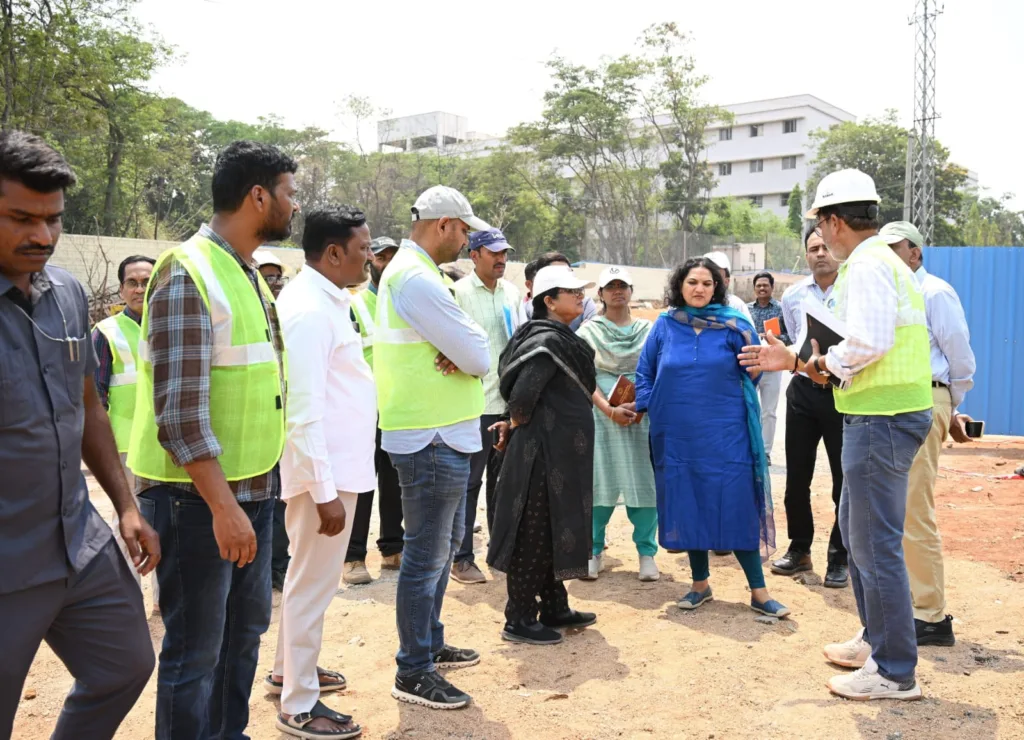 శేరిలింగంపల్లి, ఏప్రిల్ 25 (నమస్తే శేరిలింగంపల్లి): శేరిలింగంపల్లిలోని గచ్చిబౌలి ట్రిపుల్ ఐటీ, ఖాజాగూడ జంక్షన్లలో H-CITI ఫ్లైఓవర్ పనులను వేగవంతం చేయాలని సైబరాబాద్ మున్సిపల్ కార్పొరేషన్ (CMC) కమిషనర్ సృజన అధికారులను ఆదేశించారు. శనివారం IIIT జంక్షన్, ఖాజాగూడ జంక్షన్లలో నిర్మాణంలో ఉన్న H-CITI ఫ్లైఓవర్ పనులను క్షేత్రస్థాయిలో ఆమె పర్యవేక్షించారు. నగరంలోని కీలక మౌలిక సదుపాయాల ప్రాజెక్టుల పురోగతిని ఆమె సమీక్షించారు. తనిఖీ సందర్భంగా కమిషనర్ పనుల ప్రస్తుత స్థితిగతులను అంచనా వేస్తూ, నిర్ణీత గడువులోగా ప్రాజెక్టును పూర్తి చేయాలని, నాణ్యత విషయంలో రాజీ పడకూడదని స్పష్టం చేశారు. నిర్మాణ పనులను వేగవంతం చేయాలని, వర్షాకాలం ప్రారంభానికి ముందే పునాది స్థాయి (Foundation level) పనులన్నీ పూర్తి చేయాలని ఆదేశించారు.