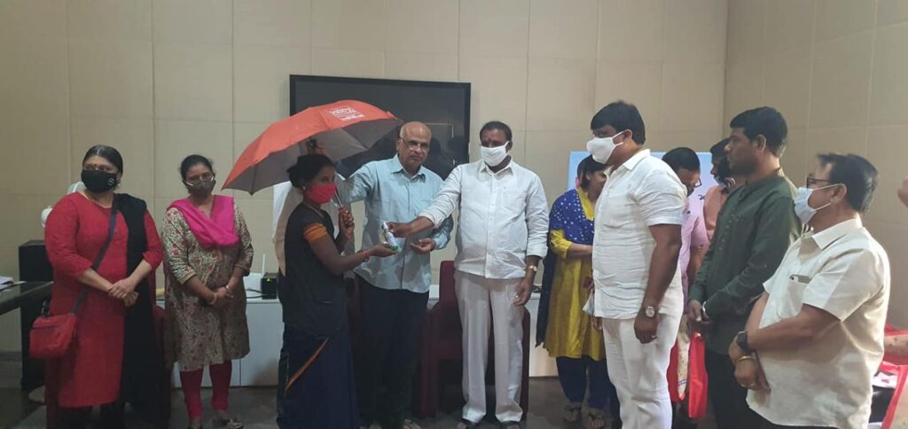 గచ్చిబౌలి (నమస్తే శేరిలింగంపల్లి): గచ్చిబౌలి డివిజన్ పరిధిలోని నల్లగండ్ల అపర్ణ సరోవర్ లో పనిచేస్తున్న సెక్యూరిటీ, ఇతర సిబ్బందికి హోప్ ఫౌండేషన్ ఛైర్మన్ కొండా విజయ్ కుమార్ ఆధ్వర్యంలో 250 మందికి మాస్కులు, శానిటైజర్లు, గొడుగులను ప్రభుత్వ విప్ ఆరెక పూడి గాంధీ శనివారం పంపిణీ చేశారు. ఈ సందర్భంగా గాంధీ మాట్లాడుతూ.. హోప్ ఫౌండేషన్ చైర్మన్ కొండా విజయ్ కుమార్ సమాజానికి చేస్తున్న సేవలు అభినందనీయమని అన్నారు. పేదలు, కార్మికులను ఆదుకునేందుకు ప్రతి ఒక్కరూ ముందుకు రావాలన్నారు. సమాజం కోసం ఏదో ఒకటి చేయాలనే తపన కలిగి ఉండడం చాలా గొప్ప విషయమని అన్నారు. సమాజ హిత కార్యక్రమాలు చేస్తున్న హోప్ ఫౌండేషన్ సేవలను గాంధీ అభినందించారు. ఈ కార్యక్రమంలో తెరాస నాయకులు మంత్రిప్రగడ సత్యనారాయణ రావు, సురేందర్ తదితరులు పాల్గొన్నారు.