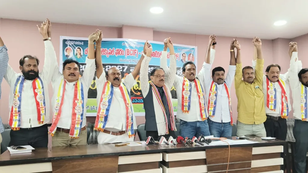 శేరిలింగంపల్లి, మార్చి 22 (నమస్తే శేరిలింగంపల్లి): బషీర్బాగ్ ప్రెస్ క్లబ్ లో బీసీ ఇంటలెక్చువల్ ఫోరం, బీసీ పొలిటికల్ ఫ్రంట్ సంయుక్త ఆధ్వర్యంలో 2026-27 వార్షిక బడ్జెట్ సందర్భంగా నిర్వహించిన మీడియా సమావేశానికి బీసీ పొలిటికల్ ఫ్రంట్ వైస్ చైర్మెన్ దుర్గయ్య గౌడ్ అధ్యక్షత వహించారు. ఈ కార్యక్రమానికి బీసీ ఇంటలెక్చ్ వల్ ఫోరమ్ అధ్యక్షుడు, IAS చిరంజీవులు, బీసీ పొలిటికల్ ఫ్రంట్ ఛైర్మెన్ బాలగౌని బాలరాజ్ గౌడ్ , విజయ్ కుమార్ గౌడ్, ఆయిలీ వెంకన్న గౌడ్ లు హాజరై మాట్లాడుతూ.. ఈ రాష్ట్రంలో బీసీలు ప్రభుత్వ లెక్కల ప్రకారం 56 శాతం కానీ రాష్ట్ర వార్షిక బడ్జెట్లో 3.85 శాతం అంటే.. రూ.3,24,234 కోట్ల బడ్జెట్ లో బీసీ లకు రూ.12, 511 కోట్లు కేటాయించడం తీవ్ర అన్యాయం అని అన్నారు. కాంగ్రెస్ ప్రభుత్వం గత బడ్జెట్ 2024-25 లో రూ.9,200.32 కోట్లు కేటాయించి రూ.2068.88 కోట్లు ఖర్చు చేశారని తెలిపారు. 2025-2026 గాను రూ.11,405.31 కోట్లు కేటాయించి కేవలం రూ.3500 కోట్లు మాత్రమే ఖర్చు పెట్టారని, గత రెండు సంవత్సరాలలో రూ.20,605.63 కోట్లు కేటాయించి రూ.5568.88 కోట్లు ఖర్చు చేశారని తెలిపారు. అంటే కేటాయించిన బడ్జెట్లో 27.02 శాతం మాత్రమే ఖర్చు చేశారని అన్నారు. దీని వల్ల బీసీల పట్ల ప్రభుత్వానికి చిత్తశుద్ధి లేక బీసీ వ్యతిరేక విధానాన్ని అవలంబిస్తున్నారని అర్థమవుతుందని అన్నారు.