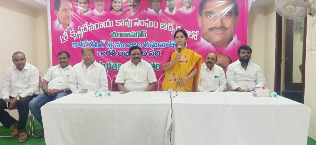 చందానగర్ (నమస్తే శేరిలింగంపల్లి): కాపులకు ఏ చిన్న సమస్య వచ్చినా తన సమస్య గా భావించి ఆ సమస్య పరిష్కారానికి కృషి చేస్తానని చందానగర్ డివిజన్ కార్పొరేటర్ మంజుల రఘునాథ్ రెడ్డి అన్నారు. చందానగర్ డివిజన్ పరిధిలోని భవ్యశ్రీ రెసిడెన్సిలో శ్రీ కృష్ణ దేవాదాయ కాపు సంఘం ఆధ్వర్యంలో ఏర్పాటు చేసిన సన్మాన సభకు ముఖ్య అతిథిగా కార్పొరేటర్ మంజుల రఘునాథ్ రెడ్డి హాజరయ్యారు. ఈ సందర్బంగా కార్పొరేటర్ మంజుల రఘునాథ్ రెడ్డిని కాపు సంఘం నేతలు మిరియాల రాఘవ రావు, మల్లికార్జున్ లు పుష్ప గుచ్ఛం అందజేసి శాలువాతో ఘనంగా సన్మానించి అభినందనలు తెలియజేశారు.