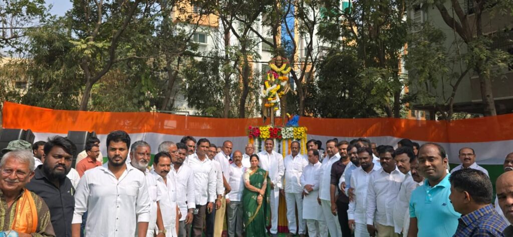 శేరిలింగంపల్లి, జనవరి 30 (నమస్తే శేరిలింగంపల్లి): జాతిపిత మహాత్మా గాంధీ 78వ వర్ధంతి సందర్భంగా చందానగర్ డివిజన్ పరిధిలోని PJR స్టేడియంలో జరిగిన వర్దంతి కార్యక్రమంలో MBC చైర్మన్ జేరిపేటి జైపాల్, కార్పొరేటర్లు మంజుల రఘునాథ్ రెడ్డి, హమీద్ పటేల్, నార్నె శ్రీనివాసరావు, మాజీ కౌన్సిలర్లు, మాజీ కార్పొరేటర్లు, నాయకులు, కార్యకర్తలతో కలిసి గాంధీ విగ్రహానికి PAC చైర్మన్ ఆరెకపూడి గాంధీ పూలమాల వేసి ఘన నివాళులర్పించారు. ఈ సందర్భంగా PAC చైర్మన్ గాంధీ మాట్లాడుతూ అహింసా మార్గంలో నడిచి, సత్యాన్ని ఆయుధంగా మార్చి దేశానికి స్వాతంత్ర్యం అందించిన గొప్ప వ్యక్తి జాతిపిత మహాత్మా గాంధీ అని అన్నారు. ప్రతి ఒక్కరు మహాత్ముడి ని ఆదర్శంగా తీసుకొని ముందుకు సాగినప్పుడే దేశం సర్వోన్నతి చెందుతుందని అన్నారు. ఈ కార్యక్రమంలో మాజీ కౌన్సిలర్లు, మాజీ కార్పొరేట్లరు, నాయకులు , కార్యకర్తలు, మహిళలు , కాలనీల అసోసియేషన్ సభ్యులు తదితరులు పెద్ద సంఖ్యలో పాల్గొన్నారు.