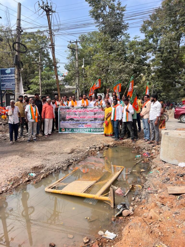 గత కొన్ని సంవత్సరాలుగా మంజీర పైప్ లైన్ రోడ్ పనులు అసంపూర్తిగా నడుస్తూనే ఉన్నాయని, జిహెచ్ఎంసి అధికారులు, ప్రజాప్రతినిధులు పట్టించుకోకపోవడం వలన రోడ్డు పనుల‌లో జాప్యం జరిగి ప్రజలు రాకపోకలకు ఇబ్బందులు పడుతున్నారని, రోడ్డు విస్తరణ చేయడానికి నిధులు మంజూరైనా రోడ్డు పనులు వేగంగా ఎందుకు జర‌గ‌డం లేదో అధికారులు తెలియపరచాలని డిమాండ్ చేశారు. గతంలో కూడా భారతీయ జనతా పార్టీ ఆధ్వర్యంలో ఈ రోడ్డు పనుల విస్తరణ కోసం తాము పెద్ద ఎత్తున ర్యాలీగా వెళ్లి చందానగర్ డిప్యూటీ కమిషనర్ కి వినతి పత్రం అందించామని, అయినా కూడా అభివృద్ధి పనులలో కమిషనర్, సంబంధిత అధికారులు అలసత్వం వహించడం వలనే నత్త నడకన సాగుతున్నాయన్నారు. హఫీజ్ పేట్ డివిజన్ సమస్యలపై పలుమార్లు అధికారుల దృష్టికి తీసుకువచ్చినా నిమ్మకు నీరెత్తినట్లుగా వ్యవహరిస్తున్నారని, ఇది సరైన పద్ధతి కాదని హెచ్చరించారు.