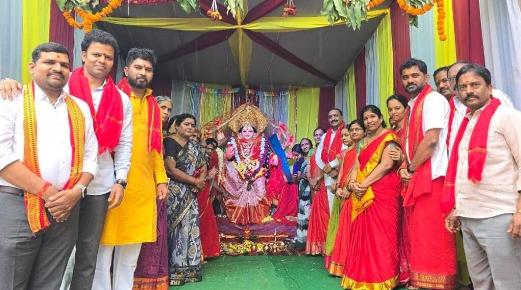 శేరిలింగంపల్లి, సెప్టెంబర్ 27 (నమస్తే శేరిలింగంపల్లి): హఫీజ్పేట్ డివిజన్ పరిధిలోని మదీనాగూడ రామకృష్ణ నగర్ కాలనీలో దసరా పర్వదినం పురస్కరించుకుని శ్రీ దేవి శరన్నవరాత్రి ఉత్సవాలలో భాగంగా అమ్మవారి పూజ కార్యక్రమంలో PAC చైర్మన్ ఆరెకపూడి గాంధీ ముఖ్యఅతిథిగా పాల్గొని అమ్మవారి ఆశీర్వాదం తీసుకొని ప్రత్యేక పూజలు చేశారు. ఈ సందర్భంగా PAC చైర్మన్ గాంధీ మాట్లాడుతూ దేవి శరన్నవరాత్రి వేడుకలను ప్రజలందరూ భక్తి శ్రద్ధలతో నిర్వహించుకోవాలని, అమ్మవారి ఆశీస్సులతో శేరిలింగంపల్లి నియోజకవర్గ ప్రజలందరూ సుఖసంతోషాలతో , శాంతి సౌభాగ్యలతో జీవించాలని ఆకాక్షించారు. ఈ కార్యక్రమంలో ఎర్రగుడ్ల శ్రీనివాస్ యాదవ్, దాత్రినాథ్ గౌడ్, ప్రసాద్ రెడ్డి, శ్రీనివాస్, సురేష్, హరికృష్ణ, భక్తులు తదితరులు పాల్గొన్నారు.