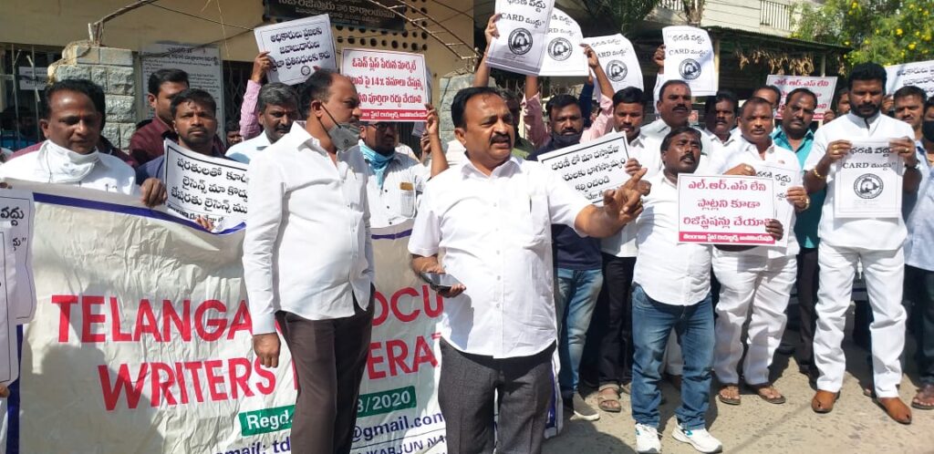 ఉప్పల్ (నమస్తే శేరిలింగంపల్లి): తెలంగాణ రాష్ట్రంలో రిజిస్ట్రేషన్లు ఆగిపోవడం వల్ల ప్రజలు ఎన్నో ఇబ్బందులు పడుతున్నారని తెలంగాణ స్టేట్ రియల్ ఎస్టేట్ అసోసియేషన్ ప్రెసిడెంట్ నారగోని ప్రవీణ్ కుమార్ అన్నారు. ఉప్పల్లోని సబ్ రిజిస్ట్రార్ కార్యాలయం ఎదుట నిర్వహించిన ధర్నాలో ఆయన పాల్గొన్నారు. ఈ సందర్భంగా ఆయన మాట్లాడుతూ రాష్ట్రంలో వ్యవసాయేతర భూములు రిజిస్ట్రేషన్లు కానందున ఎన్నో లక్షల మంది ఇబ్బందులు పడుతున్నారని అన్నారు. రియల్ ఎస్టేట్ వ్యాపారులు, ఎల్ఆర్ఎస్ దరఖాస్తు దారులు, దరఖాస్తు చేయని వారు, రిజిస్ట్రేషన్ల కోసం వేచి చూస్తున్న ప్లాట్ల ఓనర్లు, డాక్యుమెంట్ రైటర్లు ధరణి వల్ల పెద్ద ఎత్తున నష్టపోతున్నారని అన్నారు. సీఎం కేసీఆర్ తప్పుడు నిర్ణయాల వల్ల గత 3 నెలలుగా ప్రజలు నరక యాతన అనుభవిస్తున్నారని ఆవేదన వ్యక్తం చేశారు. ఇప్పటికైనా ప్రభుత్వం కళ్లు తెరిచి ప్రజోపయోగపనులు చేయాలని డిమాండ్ చేశారు. ఈ కార్యక్రమంలో అసోసియేషన్ నాయకులు ఎం.నరసయ్య, పగడాల రంగారావు, బొంగు వెంకటేష్ గౌడ్ పాల్గొన్నారు.