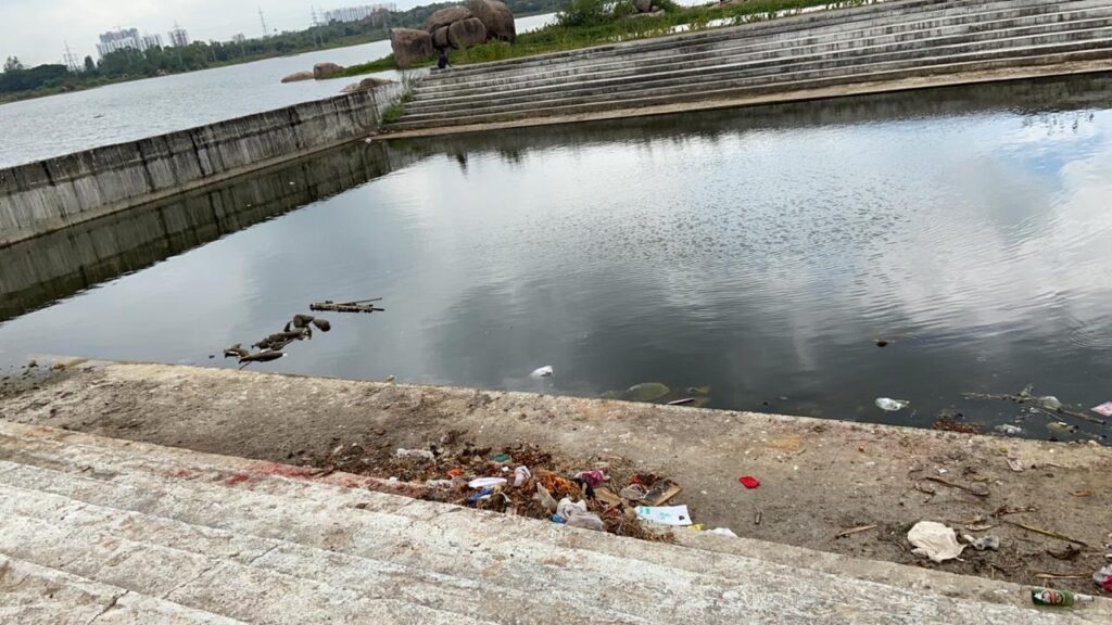 గచ్చిబౌలి (నమస్తే శేరిలింగంపల్లి): గచ్చిబౌలి డివిజన్ పరిధిలోని నల్లగండ్ల చెరువు కోనేరును వెంటనే శుభ్రం చేయాలని డివిజన్ బీజేపీ నాయకుడు మట్టా సురేష్ గౌడ్ శేరిలింగంపల్లి జోనల్ కమిషనర్ రవికిరణ్ కు ఫిర్యాదు చేశారు. వినాయక చవితి, బతుకమ్మ ఉత్సవాల నేపథ్యంలో రూపొందించిన నల్లంగండ్ల చెరువు కోనేరు వద్ద పూర్తిగా అపరిశుభ్ర వాతావరణం నెలకొందన్నారు. ఇటీవల ఉత్సవాల నేపథ్యంలో కాంట్రాక్టర్ డబ్బులు తీసుకున్నా కోనేరు పరిసరాలను ఇప్పటి వరకు శుభ్రం చేయలేదని, నిమజ్జనాలు చేసే కొలనులో నీరు దుర్గంధంగా మారిందన్నారు. అపరిశుభ్ర వాతావరణం వల్ల దోమలు వృద్ధి చెందుతున్నాయని, ప్రజలు తీవ్రమైన అనారోగ్య సమస్యల బారిన పడే అవకాశం ఉందని అన్నారు. కనుక వెంటనే చెరువు పరిసరాలను శుభ్రం చేయాలని పేర్కొన్నారు.