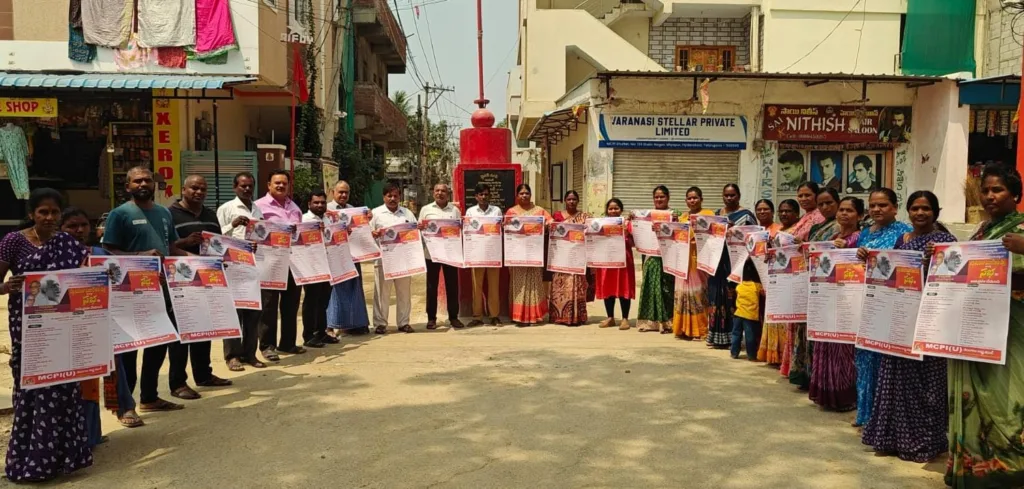 శేరిలింగంపల్లి, మార్చి 11 (నమస్తే శేరిలింగంపల్లి): ఈనెల 17వ తేదీన రవీంద్ర భారతిలో నిర్వహించనున్న మద్దికాయల ఓంకార్ శత జయంతి సభను జయప్రదం చేయాలని యంసిపి ఐ(యు) గ్రేటర్ హైదరాబాద్ కార్యదర్శి మైదం శెట్టి రమేష్ పిలుపునిచ్చారు. బుధవారం మియాపూర్ స్టాలిన్ నగర్ లోని ఎంసిపిఐ(యూ) పార్టీ కార్యాలయంలో ఆయన సభ గోడ పత్రికను ఆవిష్కరించారు. ఈ సందర్భంగా ఆయన మాట్లాడుతూ వీర తెలంగాణ రైతాంగ సాయుధ పోరాట యోధుడు, మాజీ శాసనసభ్యుడు, ఎంసిపిఐ(యు) వ్యవస్థాపక నేత మద్దికాయల ఓంకార్ శతజయంతి వార్షికోత్సవాన్ని విజయవంతం చేయాలని అన్నారు. ఓంకార్ తన ఆరున్నర శతాబ్దాల రాజకీయ ప్రస్థానంలో ఏ శక్తులకు లొంగకుండా రాజకీయాలకు విలువలు అద్దిన రాజకీయ దురంధరుడు అని కొనియాడారు. నిత్యం ప్రజల కోసం జీవించిన ఆయనను హత్య చేయడం దారుణమని అన్నారు. ఓంకార్ ఆదర్శవంతమైన జీవితాన్ని పోరాటస్మతులను గుర్తు చేసుకుంటూ 2025 మే 12 నుండి 2026 మే 12 వరకు సంవత్సర కాలం పాటు కార్యక్రమాలను వివిధ రూపాలలో ఎంసిపిఐ(యు) పార్టీ నిర్వహిస్తుందని తెలిపారు. ఈ కార్యక్రమంలో గ్రేటర్ హైదరాబాద్ సహాయ కార్యదర్శి తుడుం అనిల్ కుమార్, కార్యదర్శి వర్గ సభ్యులు తాండ్ర కళావతి, ఇస్లావత్ దశరథ్ నాయక్, కమిటీ సభ్యురాలు పి భాగ్యమ్మ, స్థానిక పార్టీ సభ్యులు ఎం.రాణి, విజయలక్ష్మి, కిషన్, గంగాధర్ లక్ష్మి, వెంకట్ రెడ్డి తదితరులు పాల్గొన్నారు.